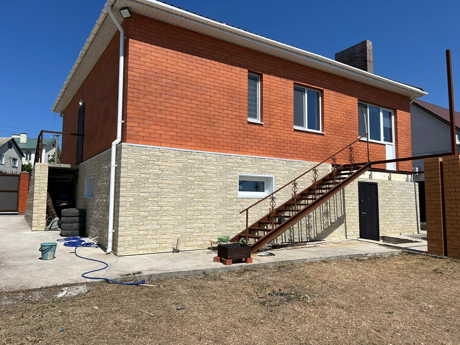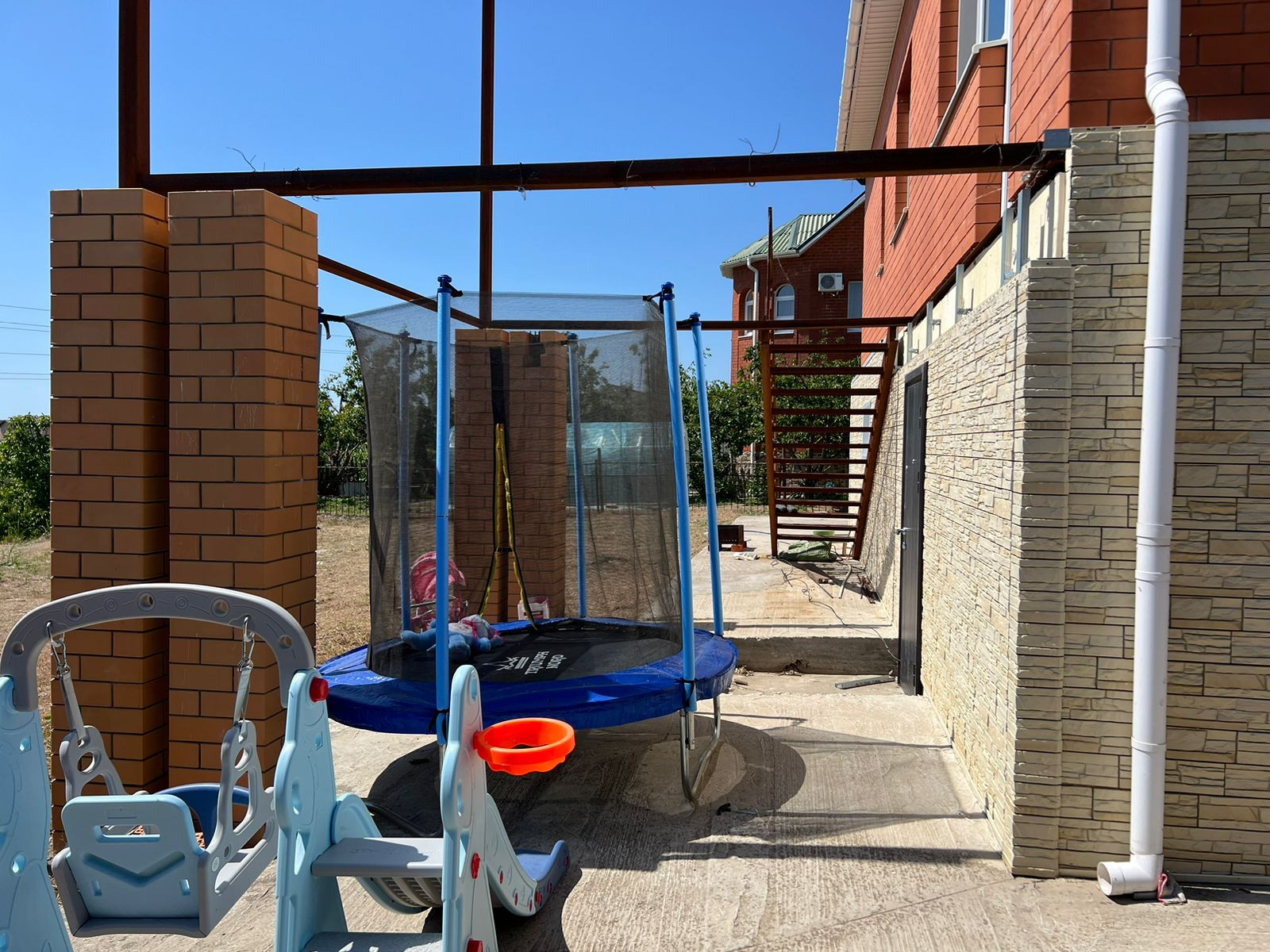 Продается новый кирпичный  двухэтажный дом: 1 этаж цокольный 4 комнаты, отопление, пред чистовая отделка, 2 этаж 2 спальни,  кухня столовая, гардеробная, санузел совмещен, теплый пол. Все комнаты изолированные. Дом с видом на море, новый забор, заезд для машины.