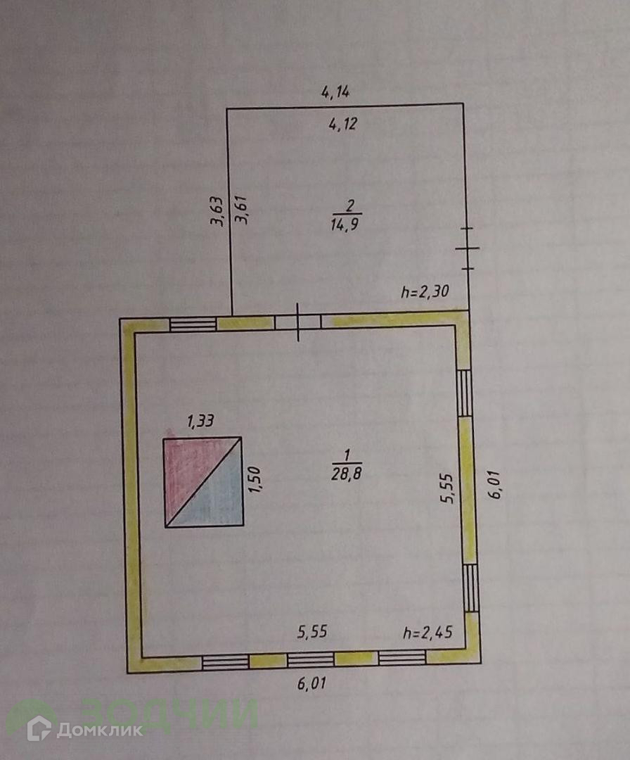 Общая площадь 28.8 м2