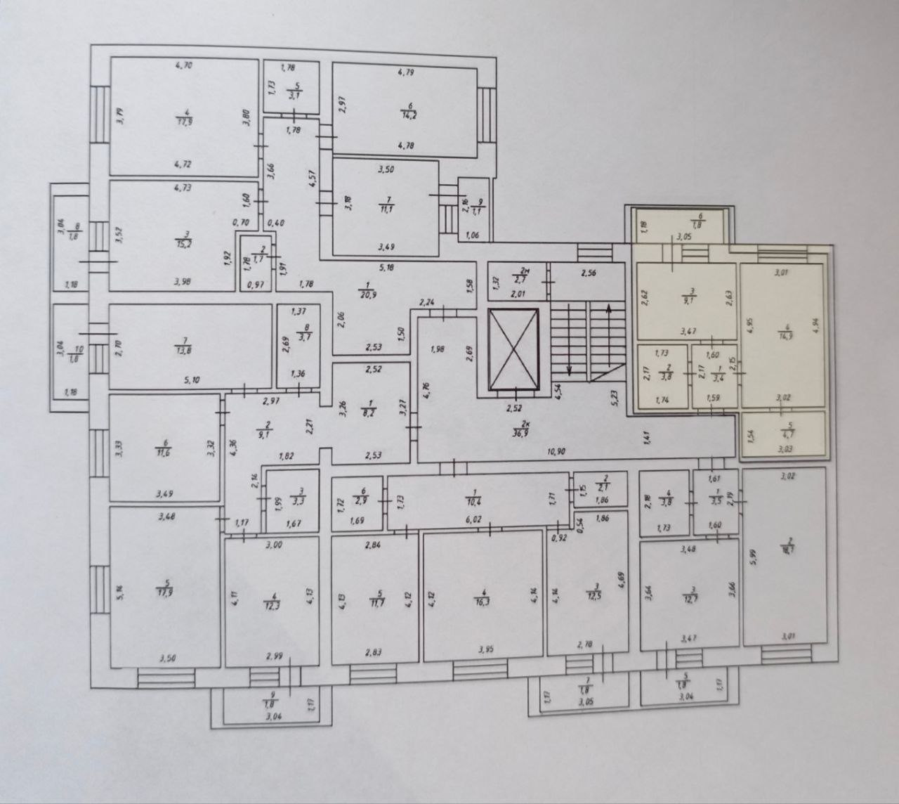 На этаже пять квартир. Коридоры широкие: 1,5 - 2м.