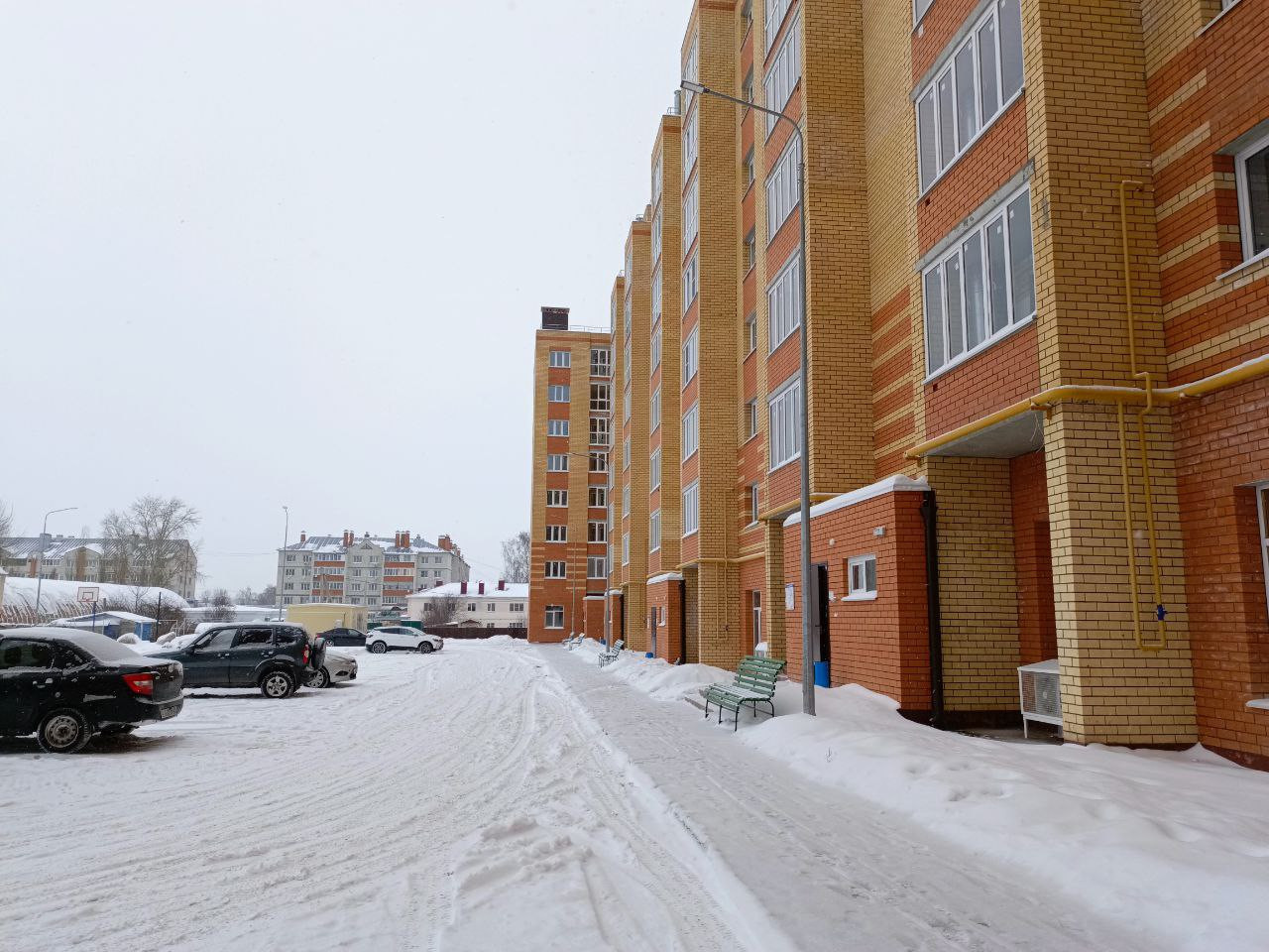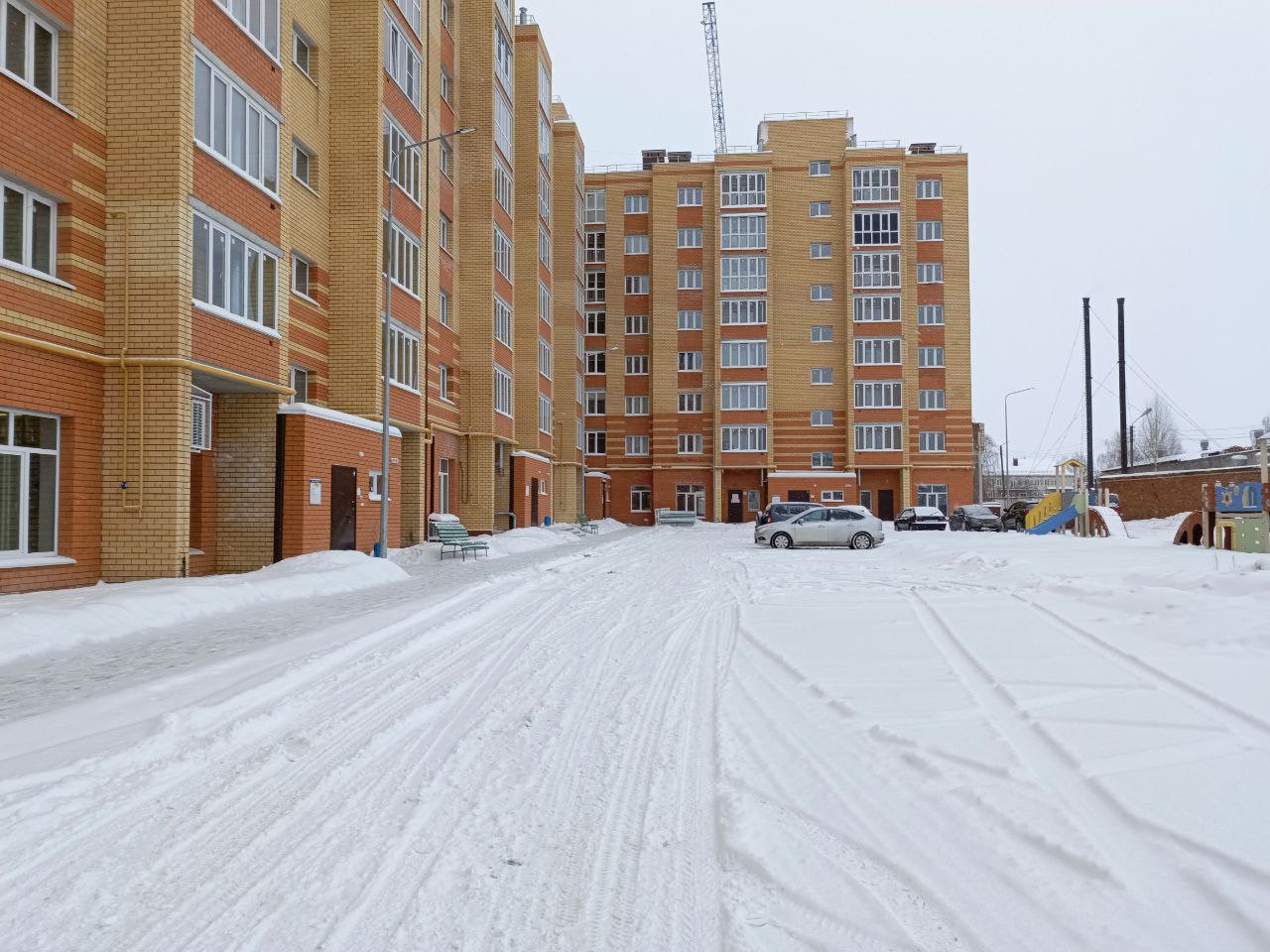 Во дворе есть детская площадка и парковочные места.