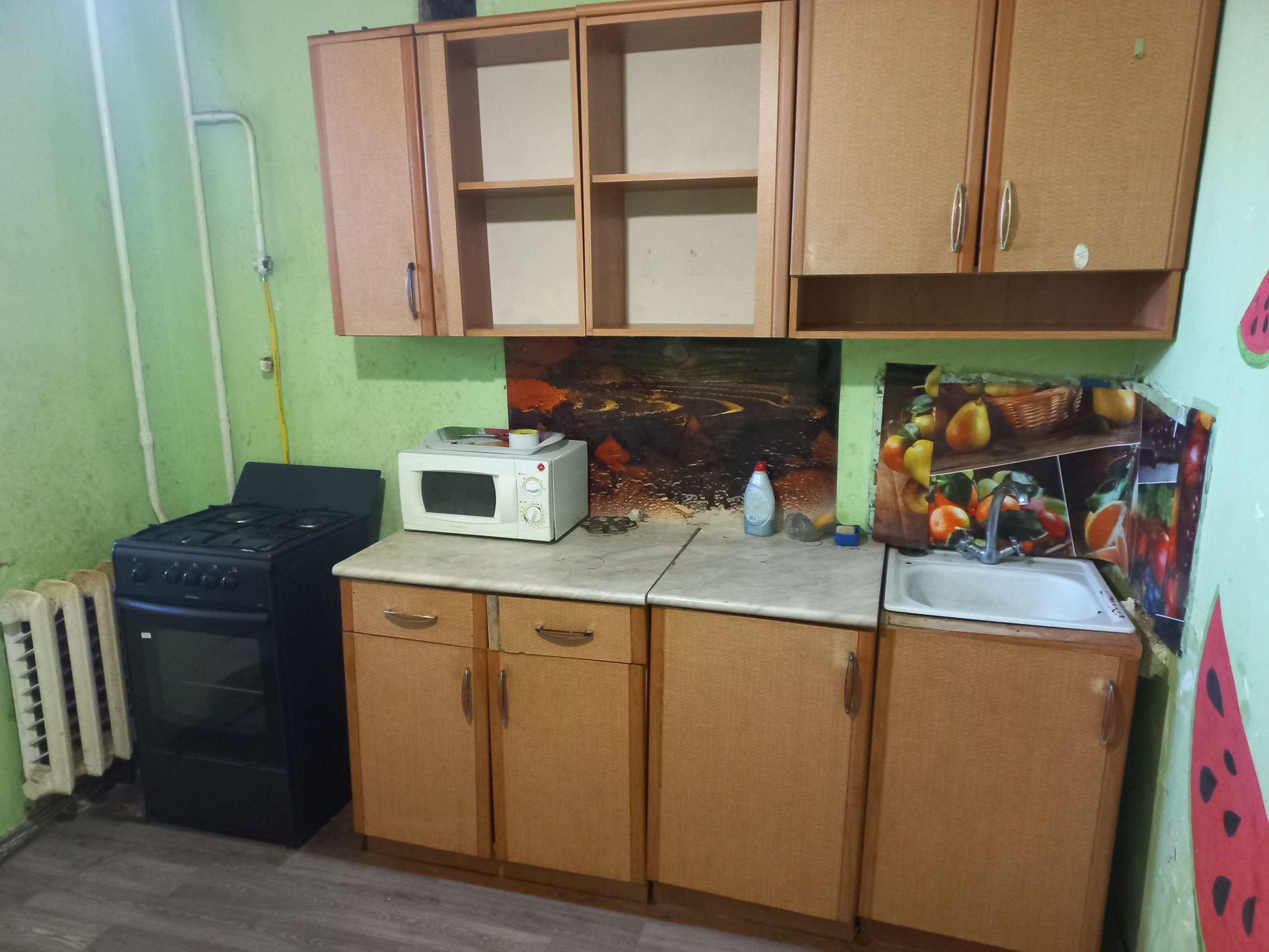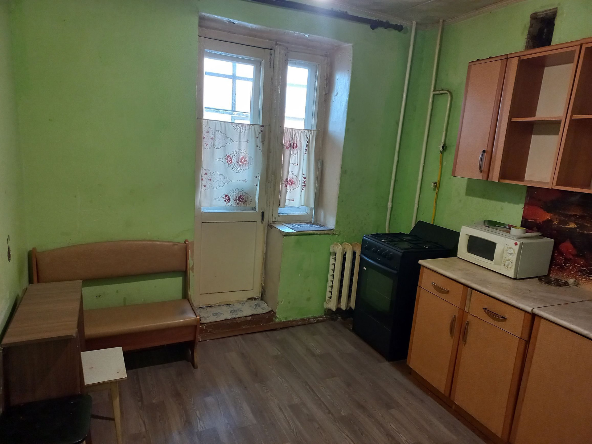 Дом кирпичный.Большая теплая однокомнатная квартира с большой кухней.Магазин,остановка прямо у дома.Чистый подъезд,чистый двор с хорошим парковочным местом.Частичная мебель.Вопросы по телефону.