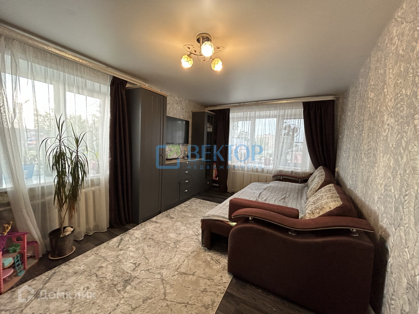 Квартира угловая, поэтому в комнате два окна. Теплая, светлая, чистая. Очень удачное расположение дома. В центральной части города.