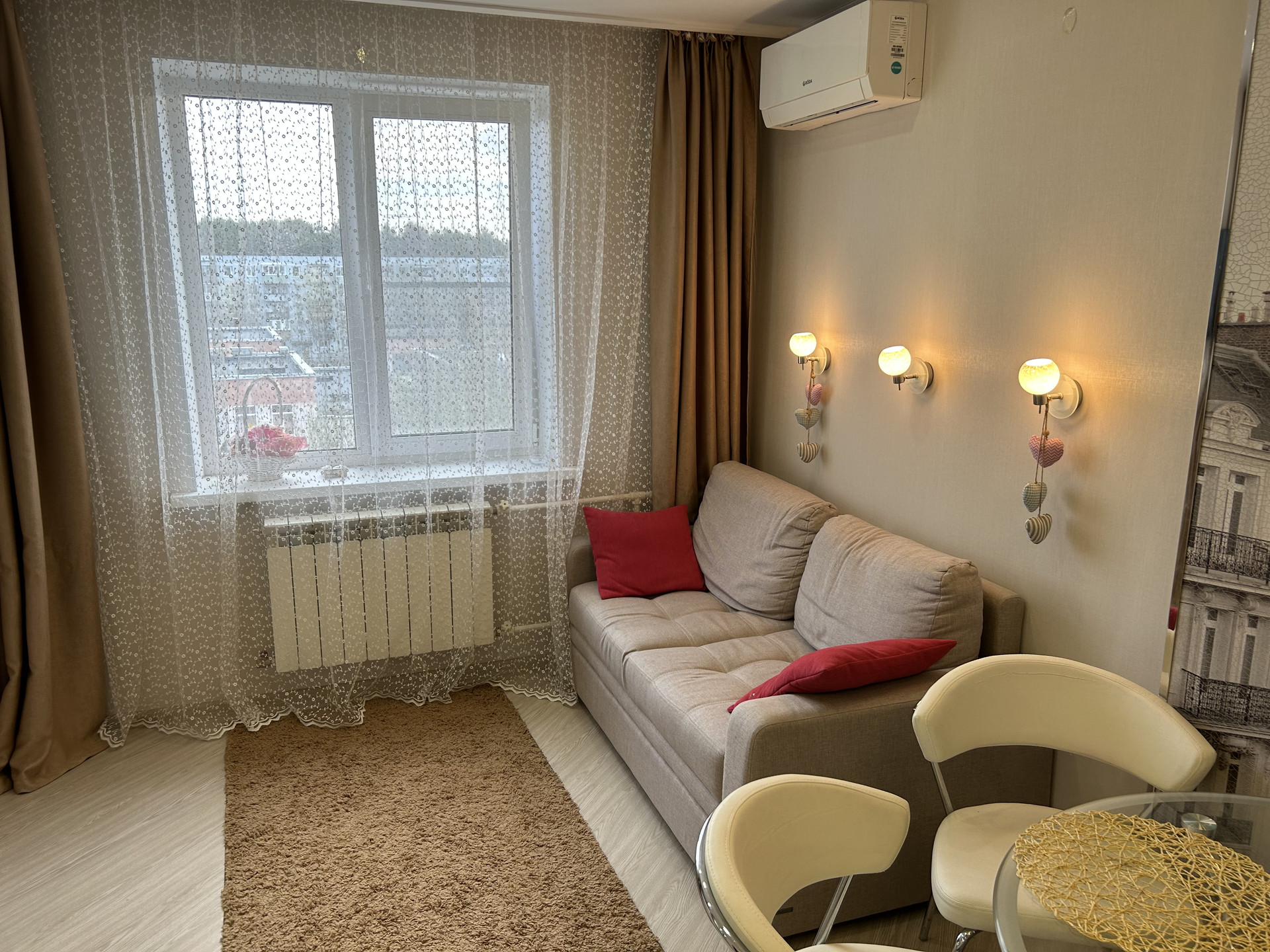 Продам (1)однокомнатную квартиру  индивидуальной планировки (Дизайн проект), на пятом этаже, пятиэтажного  дома (1МП 5/5 панель) Элитный спальный район. (Район Красные сосенки). Площади: 33/12/18. С/у – совмещённый, в кафеле. Есть техническое помещение. Всё выполнено из дорогих материалов. Натяжной потолок сделан из цельного полотна. Дорогой ламинат. Тёплый пол. Индивидуальный кухонный гарнитур. Подбиралась хорошая сантехника. В спальне много подсветок. Окна - пластиковые. Солнечная сторона. Балкон застеклен – на полу плитка. Красивый вид из окон. Очень тёплая квартира. В летний период есть кондиционер. Во дворе есть детская площадка. Рядом детский сад и школа. Развитая инфраструктура (магазин –гипермаркет Пятёрочка 1 минута пешком .). До остановки 1 минута пешком. Рядом лес, генеральский пруд, фонтаны, река Вязьма, Парк культуры и отдыха, кафе-пиццерия – всё в шаговой доступности.