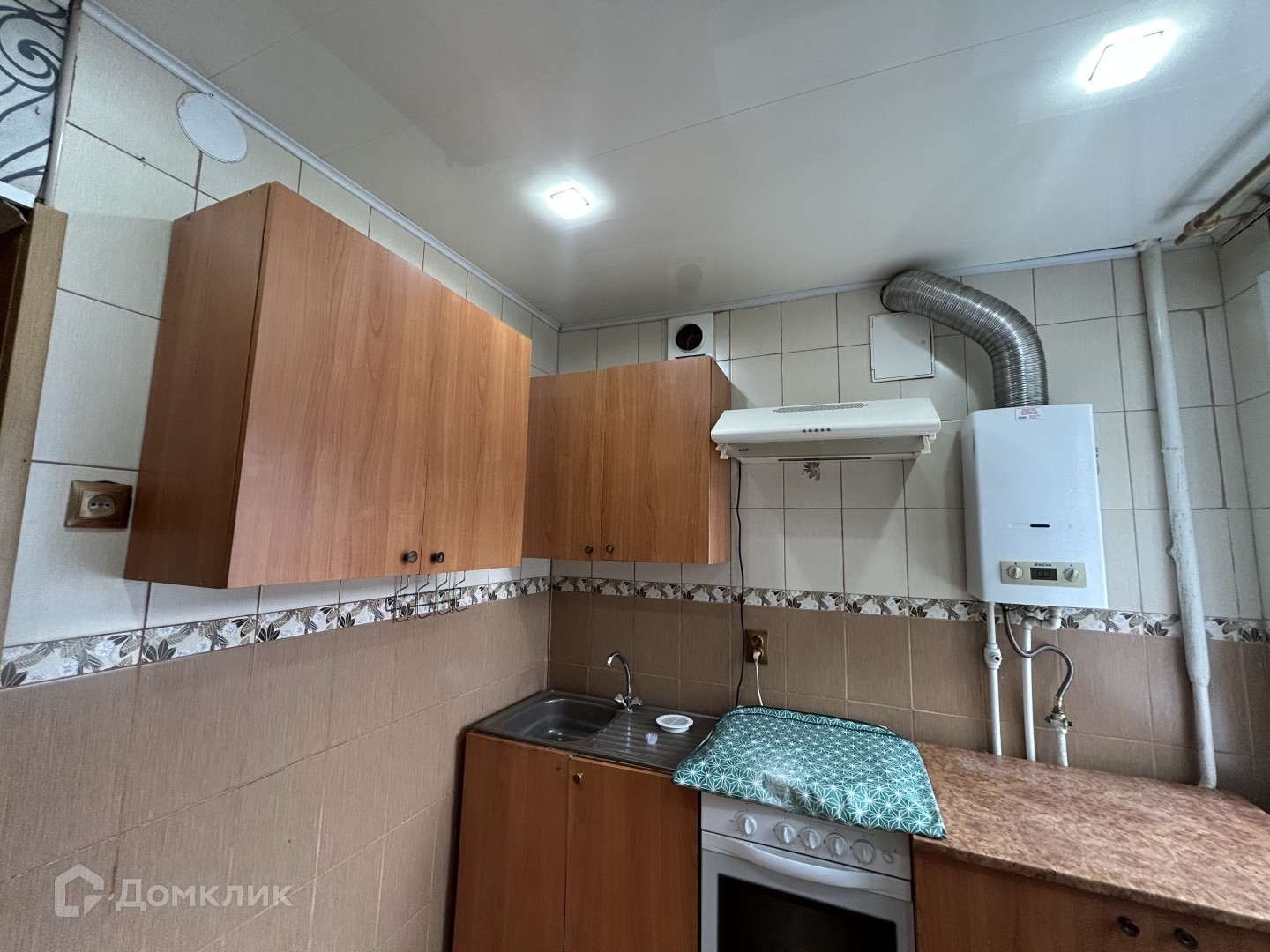 на кухне фартук в плитке до потолка,