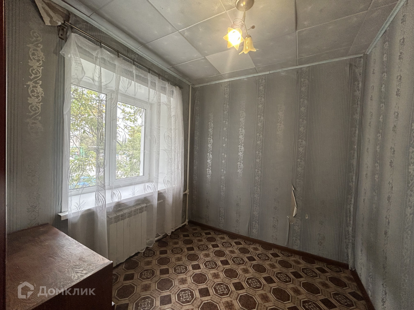 Квартира теплая, угловая. Требует незначительных вложений: перестелить линолеум, поменять входную дверь, застеклить балкон, освежить обои.