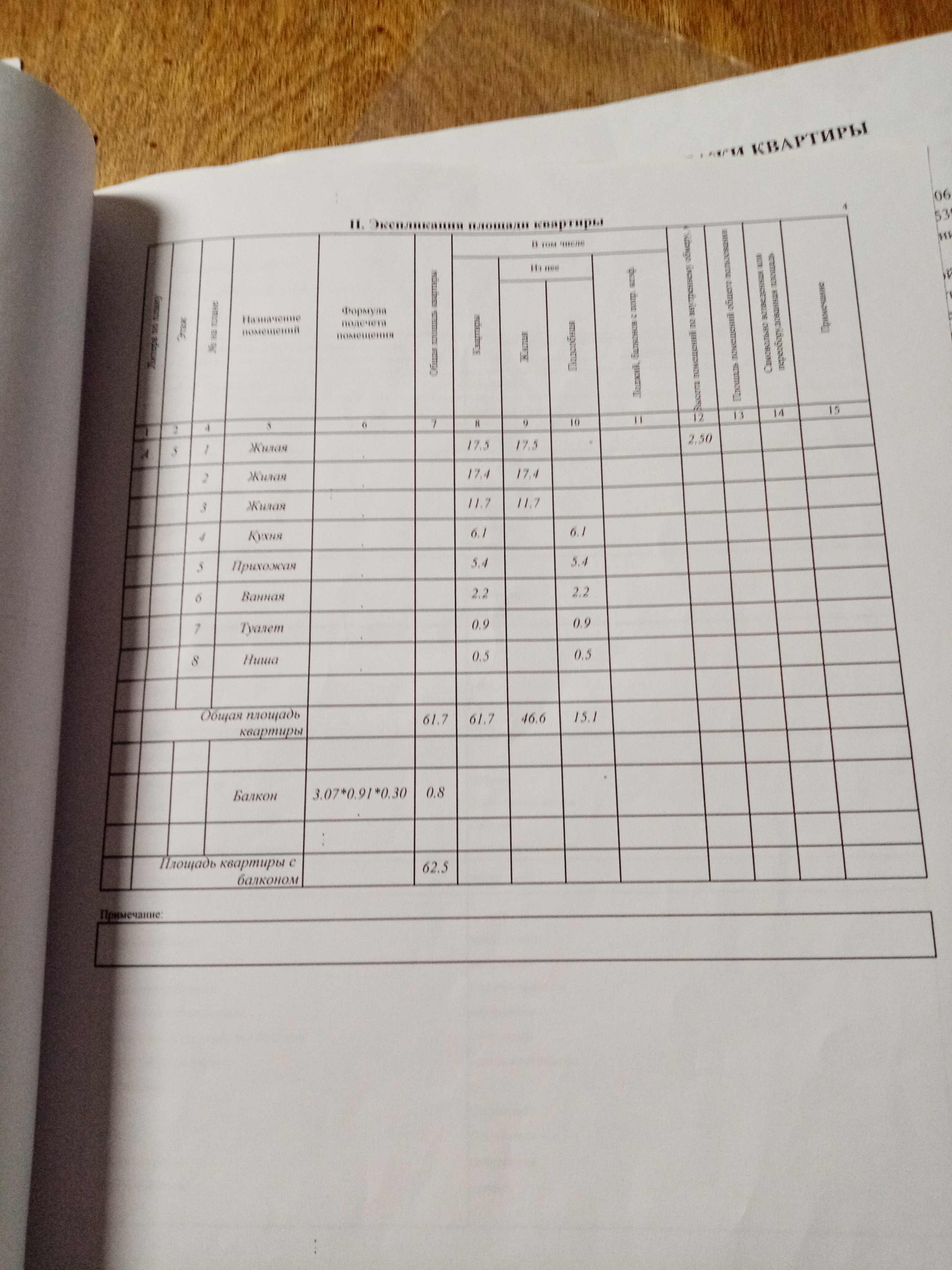 Общая площадь 61.7 м2