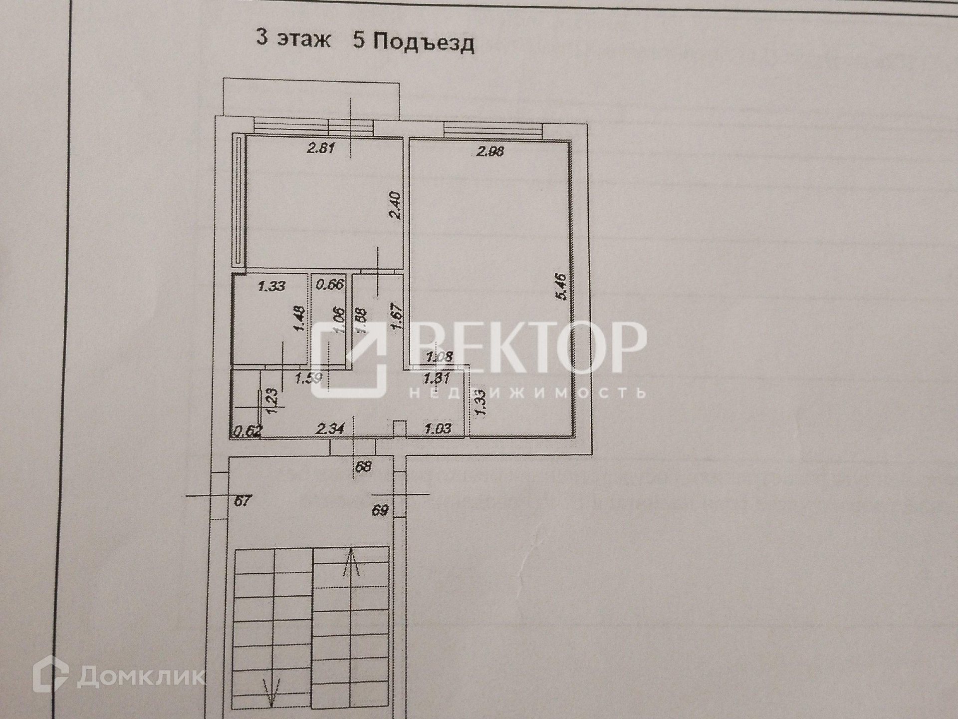 1-комнатная квартира, 30 м2, этаж 3 / 5, на продажу в Тейково, улица Советской Армии, 1