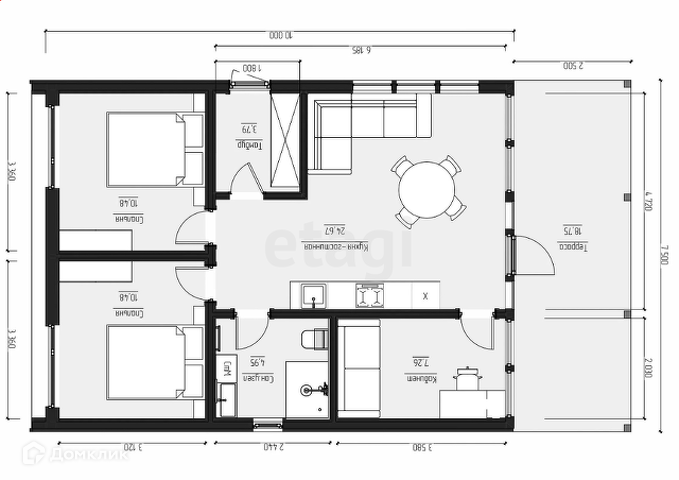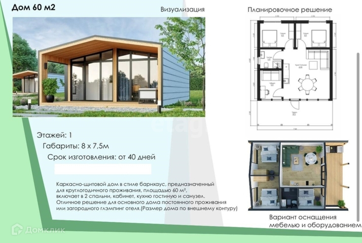 Общая площадь 60 м2