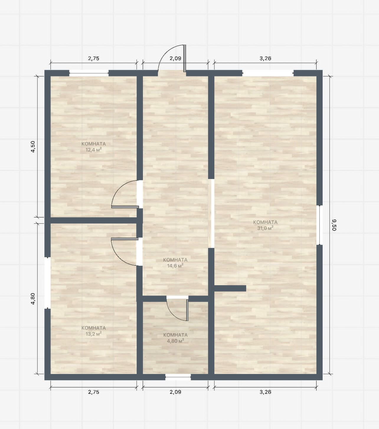 Общая площадь 76 м2