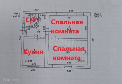 Общая площадь дома 46,4 кв. м., состоит из двух спальных комнат, кухни, совмещенного сан. узла, прихожей.