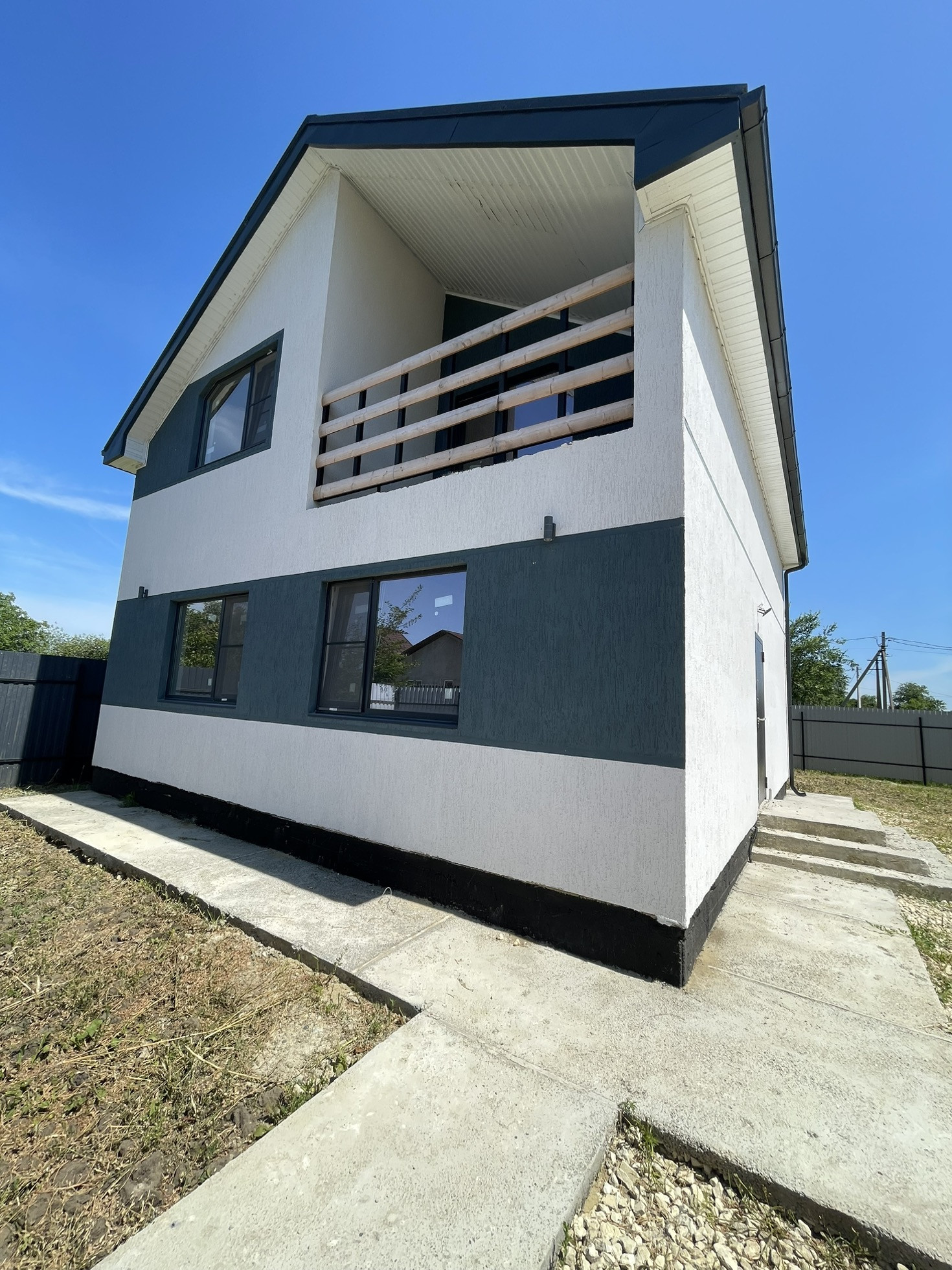 Везде большие пластиковые окна с ламинацией и тонирующим эффектом, по периметру дома сделана подсветка, вид завораживает) .