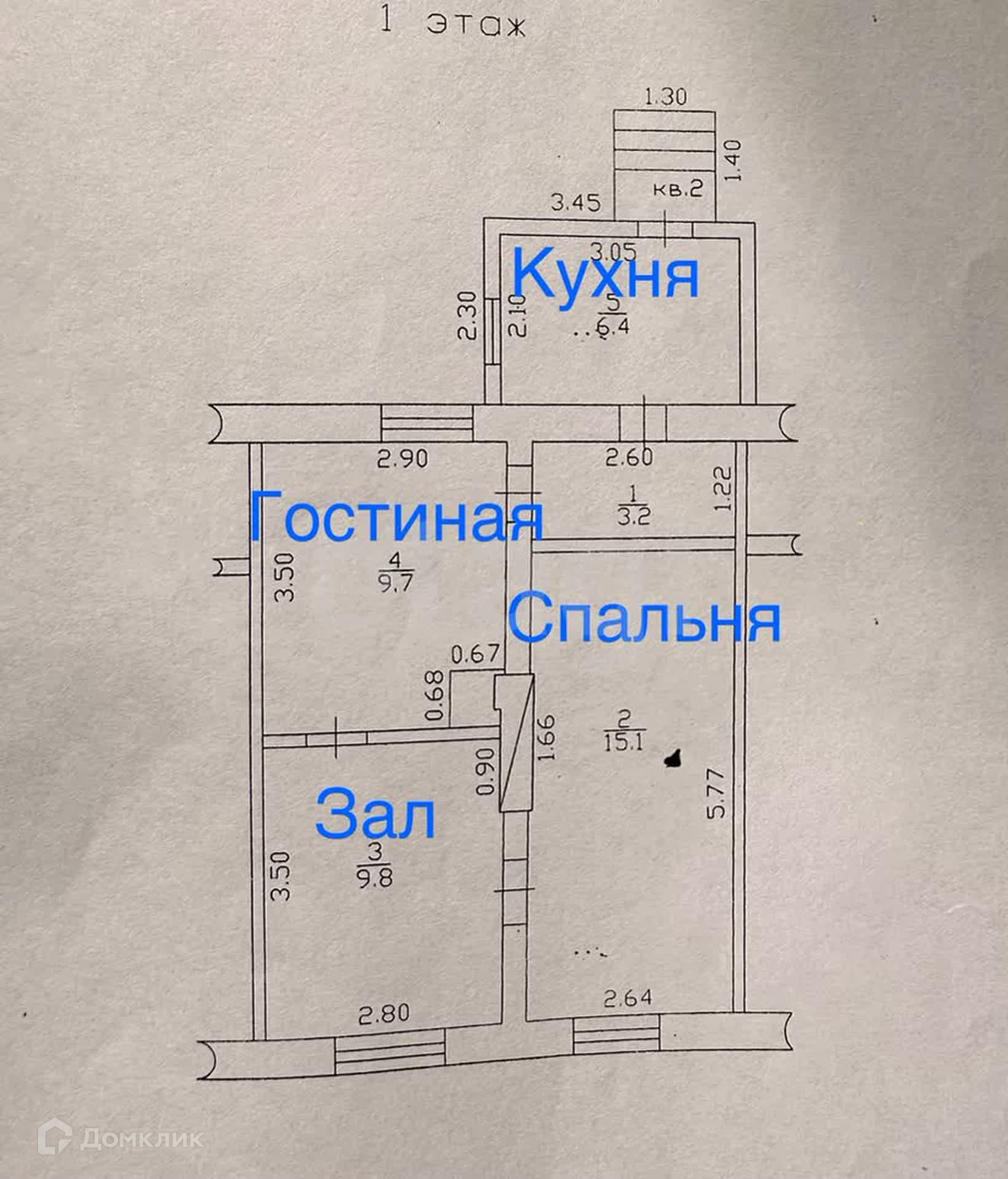 Общая площадь 44.2 м2