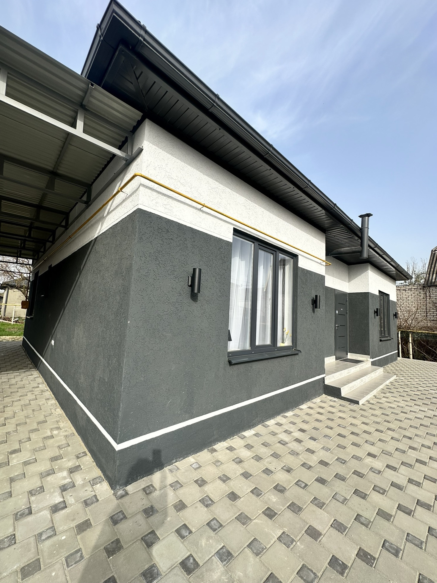 Продается новый просторный и светлый дом, общей площадью 115 кв.м.,расположенный на земельном участке - 6 соток. В доме три изолированные комнаты (15,9, 15,0 и 12,2 кв.м.соответственно), большая, светлая кухня-гостиная-37 кв.м., широкий коридор -13,4 кв.м., сан. узел совмещенный, есть терраса под общей крышей - 13 кв.м. В доме сделан качественный ремонт, сан.узел полностью в плитке, поклеены обои, потолки-натяжные, в комнатах на полу ламинат,  двери с доборными элементами,  в ванной комнате, коридоре и в кухне-гостиной сделаны теплые полы. Во дворе сделана тротуарная плитка, забор по периметру и фасадной части дома, откатанные ворота и калитка. Выполнена отмостка и предусмотрено место для автомобиля.  Подключены все коммуникации. Также этот дом можно купить по семейной ипотеке  - 6 %, или под программе гос.поддержка  - 8%.