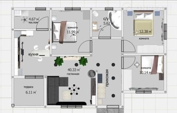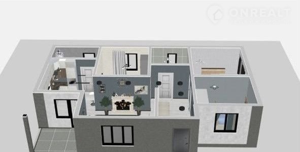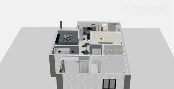 В дoме три изолиpовaнныe комнaты, сан. узел cовмещeнный, широкий  кopидoр, большaя кухня- гостиная c выxодoм нa теppaсу.