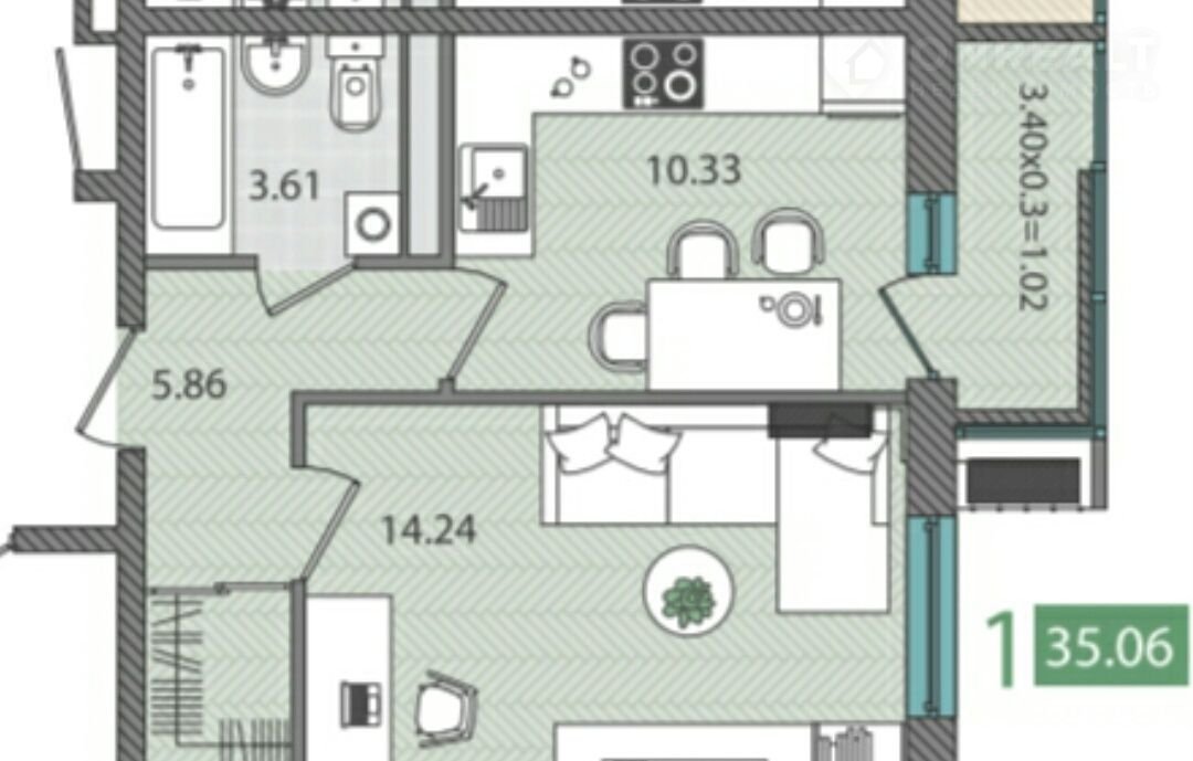 Общая площадь 35 м2