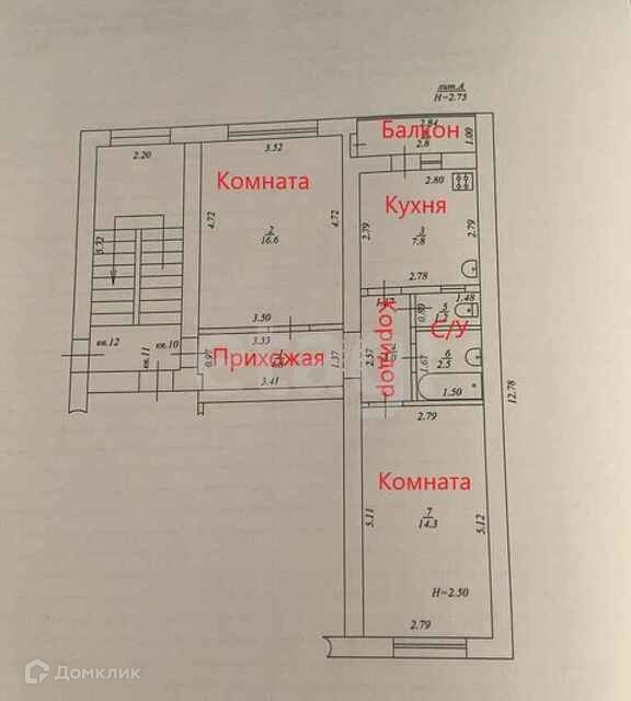 Общая площадь 50.2 м2