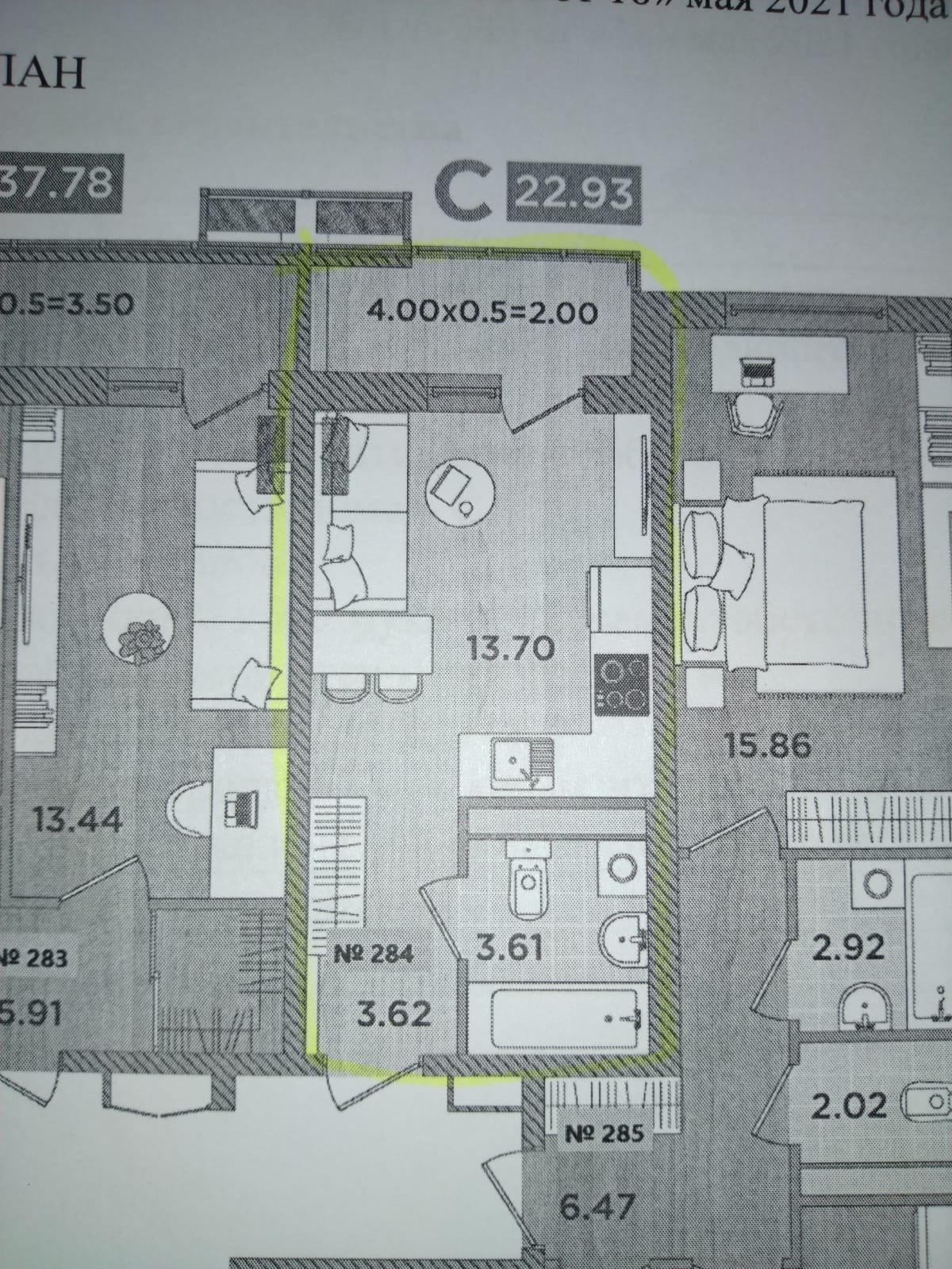 Балкон, лоджия 1 балкон