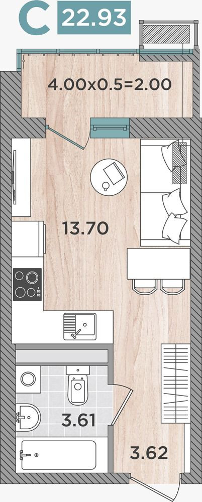 Общая площадь 25 м2