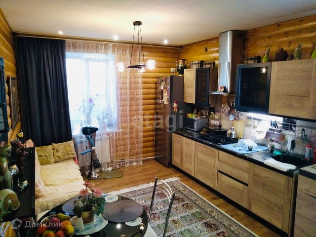 Кухня-гостиная 1.8 кв. м.: отделка - блек хаус, дорогой качественный ламинат, вытяжка, освещение общее и точечное.