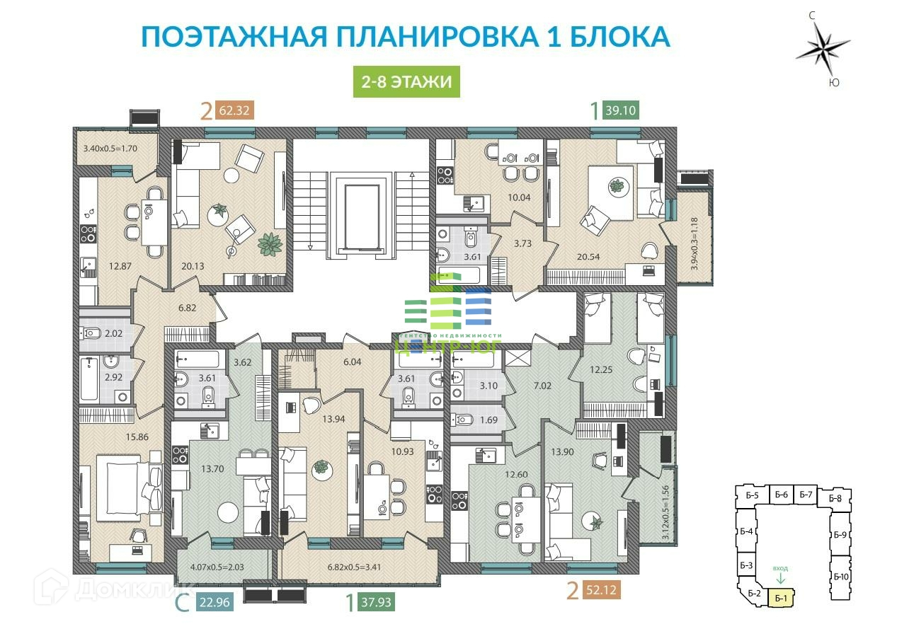 1-комнатная квартира, 39.1 м2, этаж 3 / 8, на продажу в Темрюке, Дальняя улица, 30