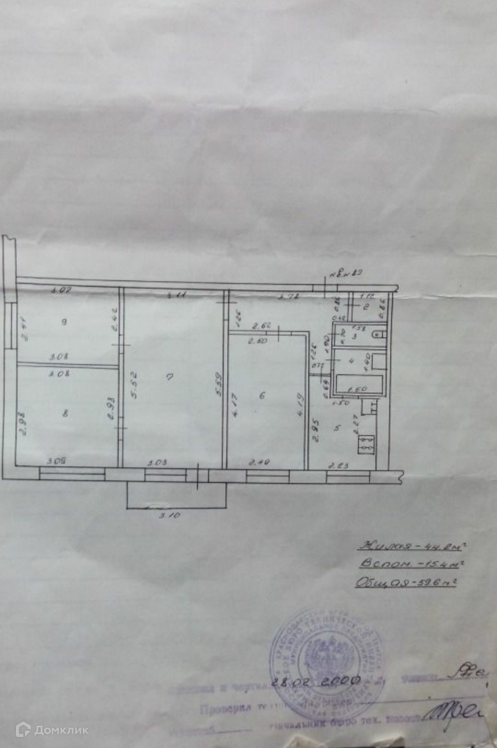 Жилая площадь 44.2 м2