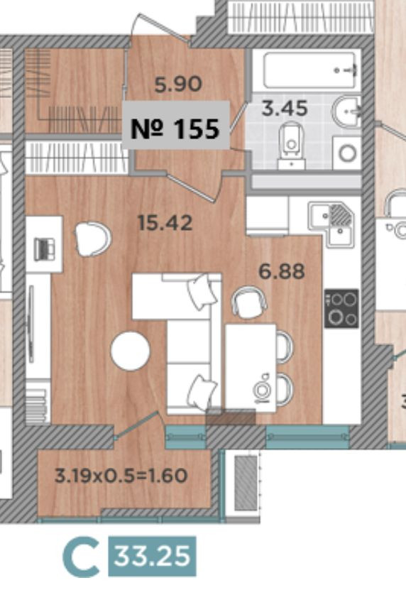 Общая площадь 33 м2