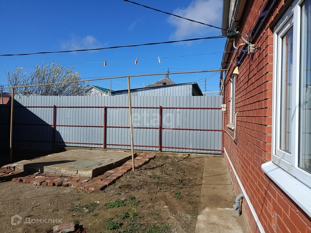 Дом блочный облицован кирпичом, забор из металлического профлиста, Можно организовать навет между строениями, металлоконструкции установлены.