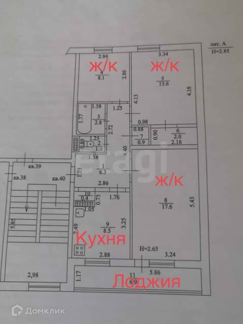 Квартира со свежим капитальным ремонтом площадью 63,2 кв. м., где спальни 8,1 и 13,6 кв. м., зал 17,6 кв. м., ванная 2,8 кв. м., с/у 1 кв. м., коридор 8,3 кв. м., кухня 8,5 кв. м.