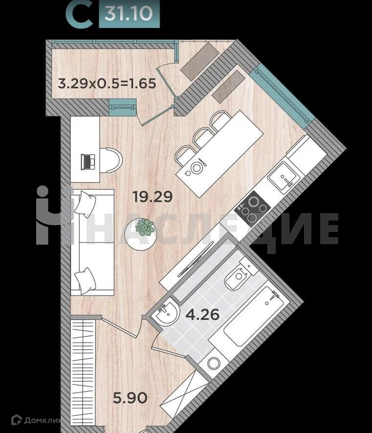 Общая площадь 31.1 м2