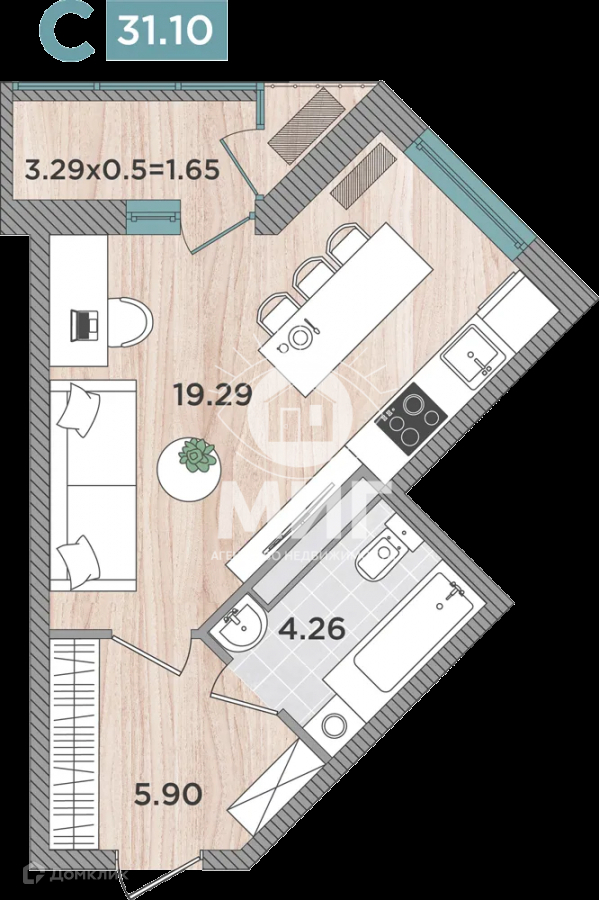 Общая площадь 31.1 м2