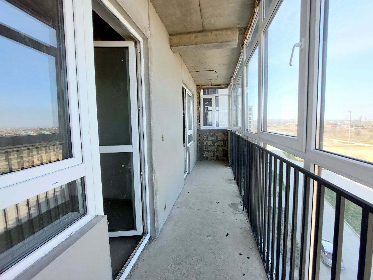 Большая лоджия с панорамным остеклением ( выход с кухни и с комнаты)