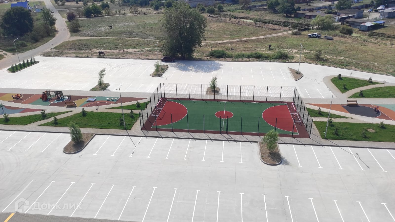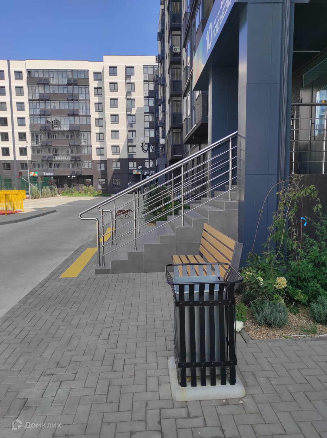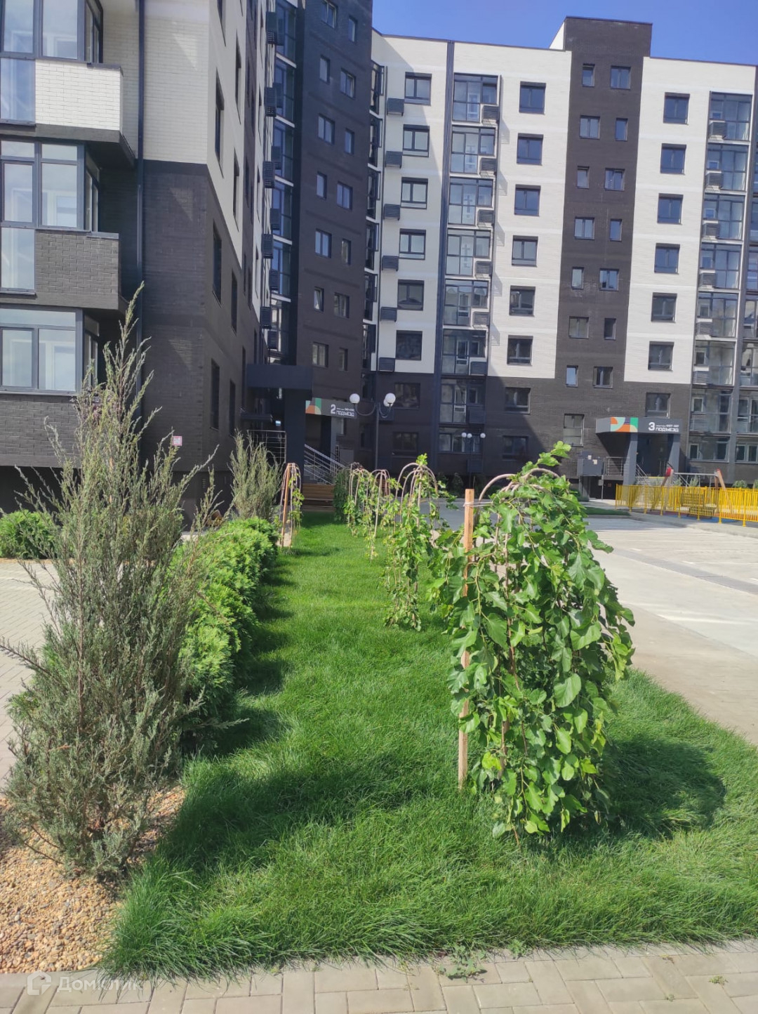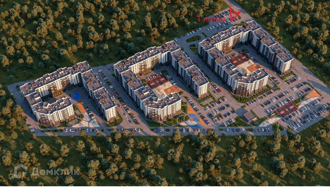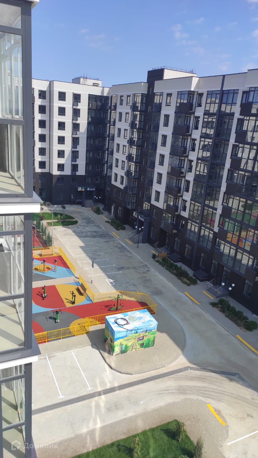 Внутри расположен двор со спортивными и детскими площадками. Благоустройство территории выполнено на высоком уровне.