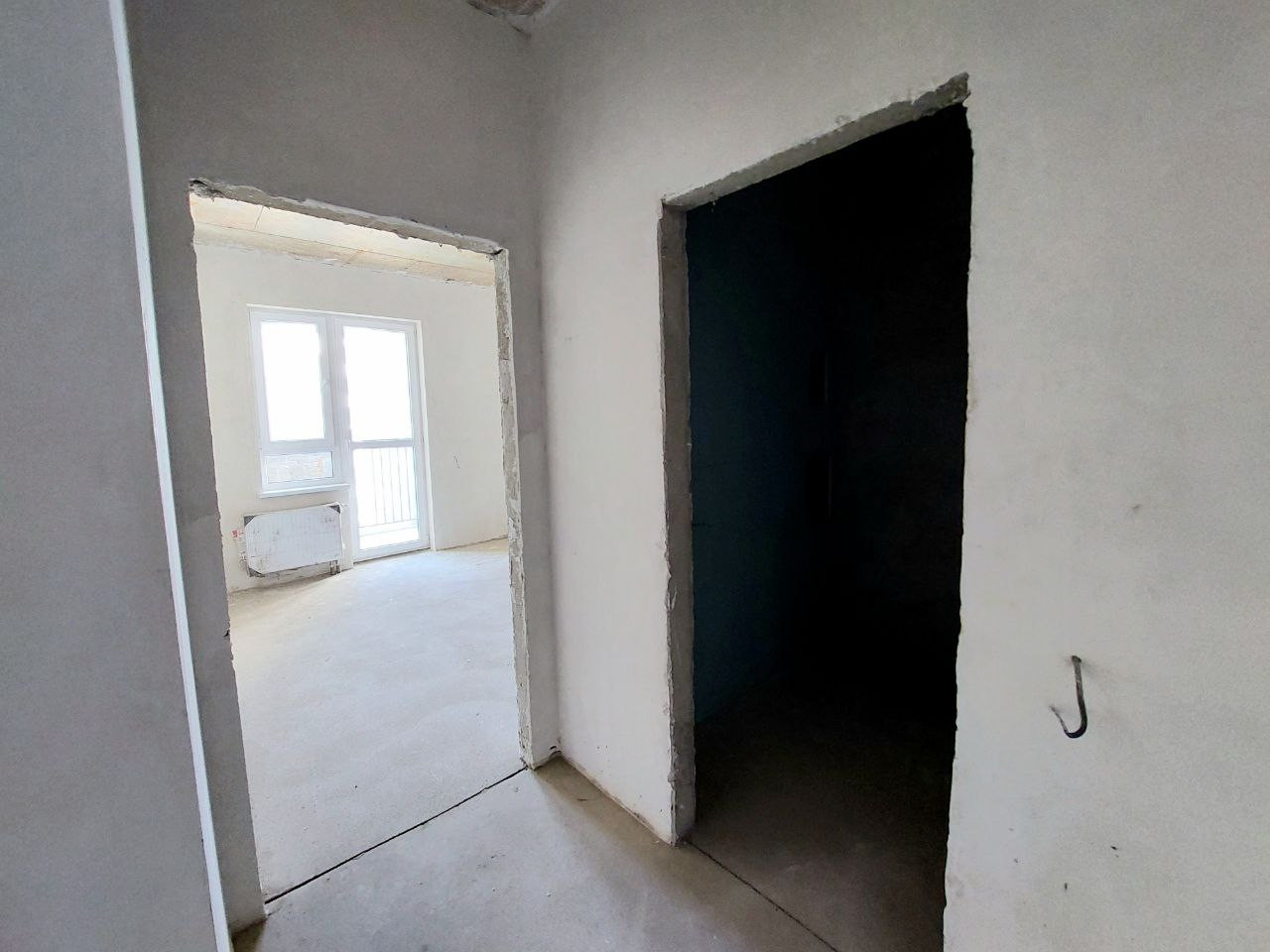 При входе слева - ниша под гардеробную.