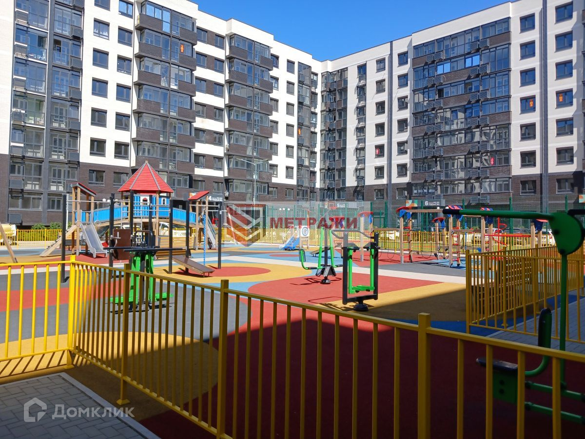 Закрытая территория, парковочные места, детские и игровые площадки, скамейки. Территория двора с озеленением. За территорией двора спортивные площадки и зоны отдыха.