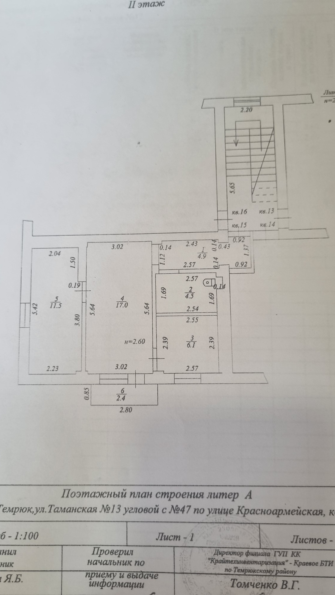 2-комнатная квартира, 44 м2, этаж 2 / 2, на продажу в Темрюке, Таманская улица, 13