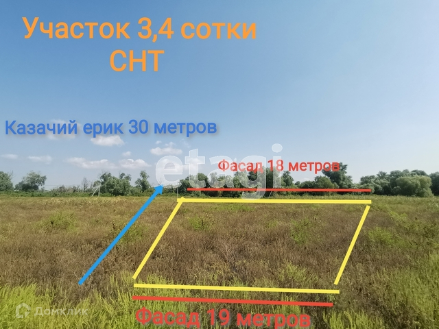 Продаётся участок 3,4 сотки у реки Казачий ерик. Участок ровный, практически квадратной формы, с двумя фасадами - 19 и 18 метров. Один из фасадов выходит на канал. Участок граничит с каналом ведущим в Казачий ерик. Расстояние до Ахтанизовского лимана - 4 км. (минимальное расстояние до лотосов). Рядом с участком столб электроэнергии, имеется свой трансформатор. Идеальное место для отдыха, рыбалки, охоты. Подойдет как под коммерцию, так и для дачного домика. Есть возможность прописки. Назначение земли - СНТ. По ПЗЗ можно построить здание до 3х этажей. До Азовского моря - 15 км., до Чёрного моря - 30 км. Расстояние до ближайшего посёлка - 5 км. До города Темрюк - 10 км. С нами преференции от ведущих банков. Возможен онлайн показ. Звоните!