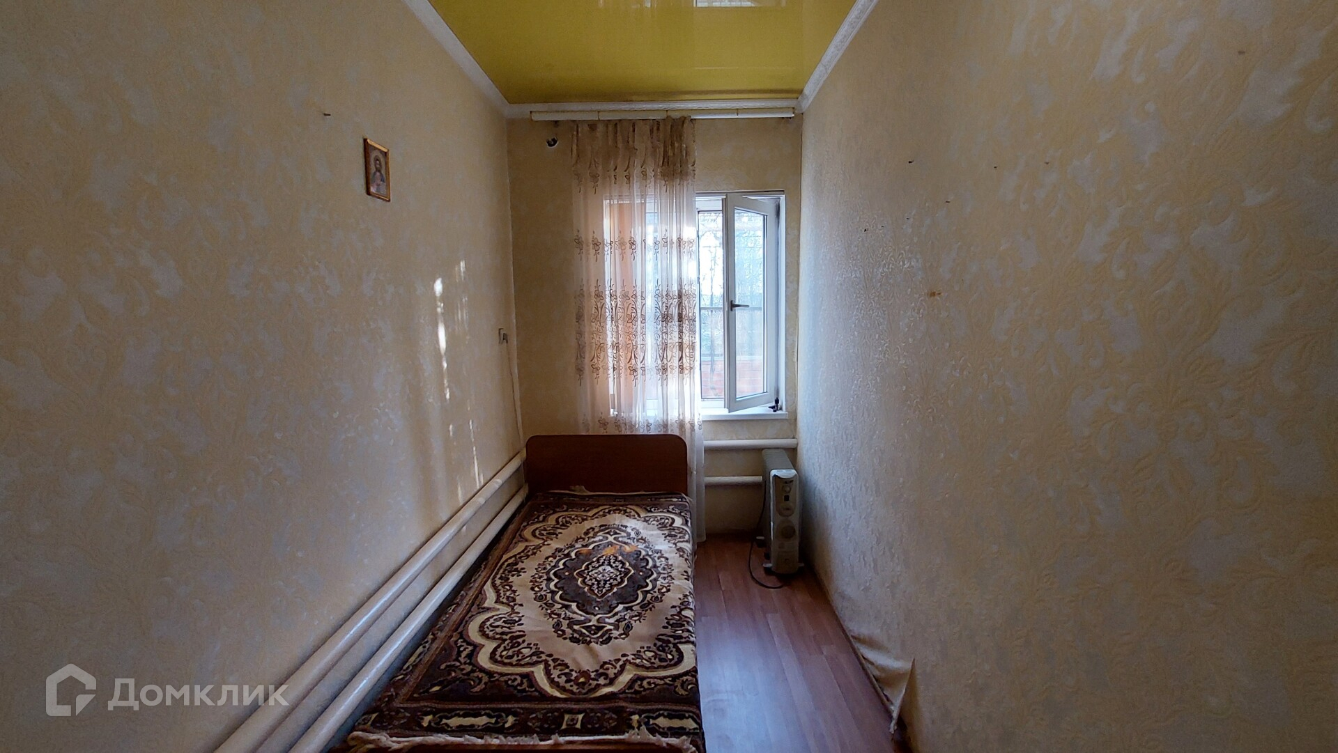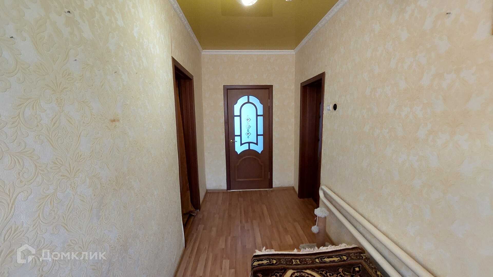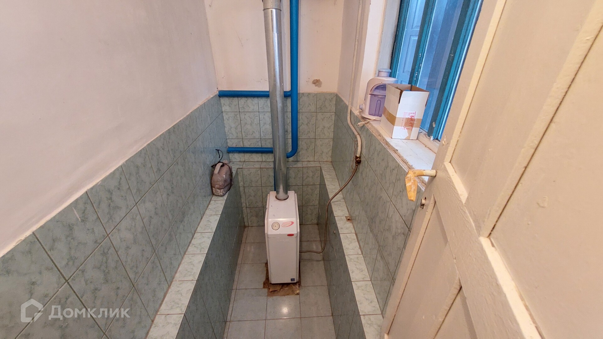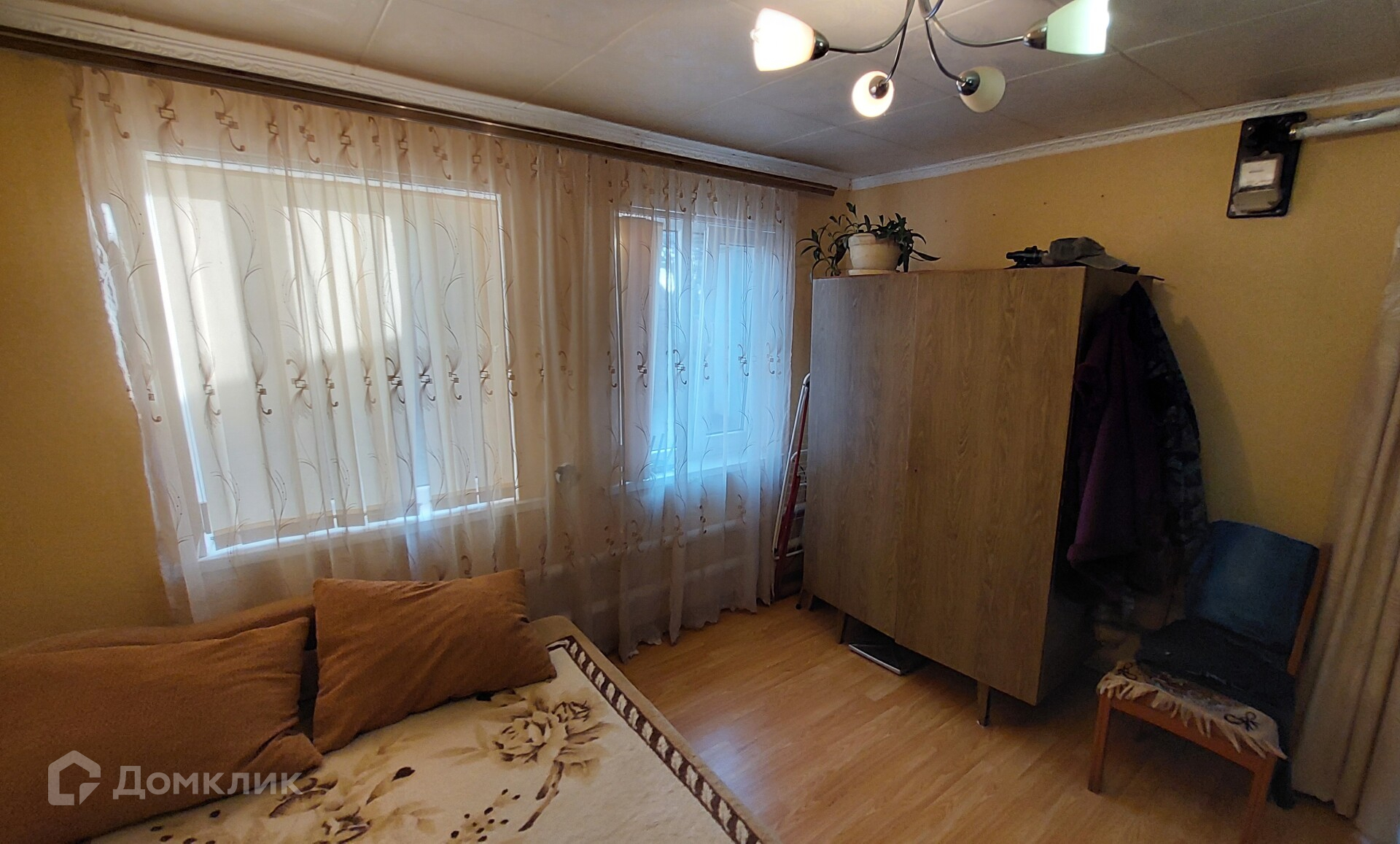 Первый дом. Его площадь - 46,6 кв. м. Здесь две изолированные комнаты, ещё одна смежная, коридор, котельная. В котельной стоит мощный газовый котёл, отапливающий оба дома. Окна в доме пластиковые, потолки натяжные, постелен ламинат.