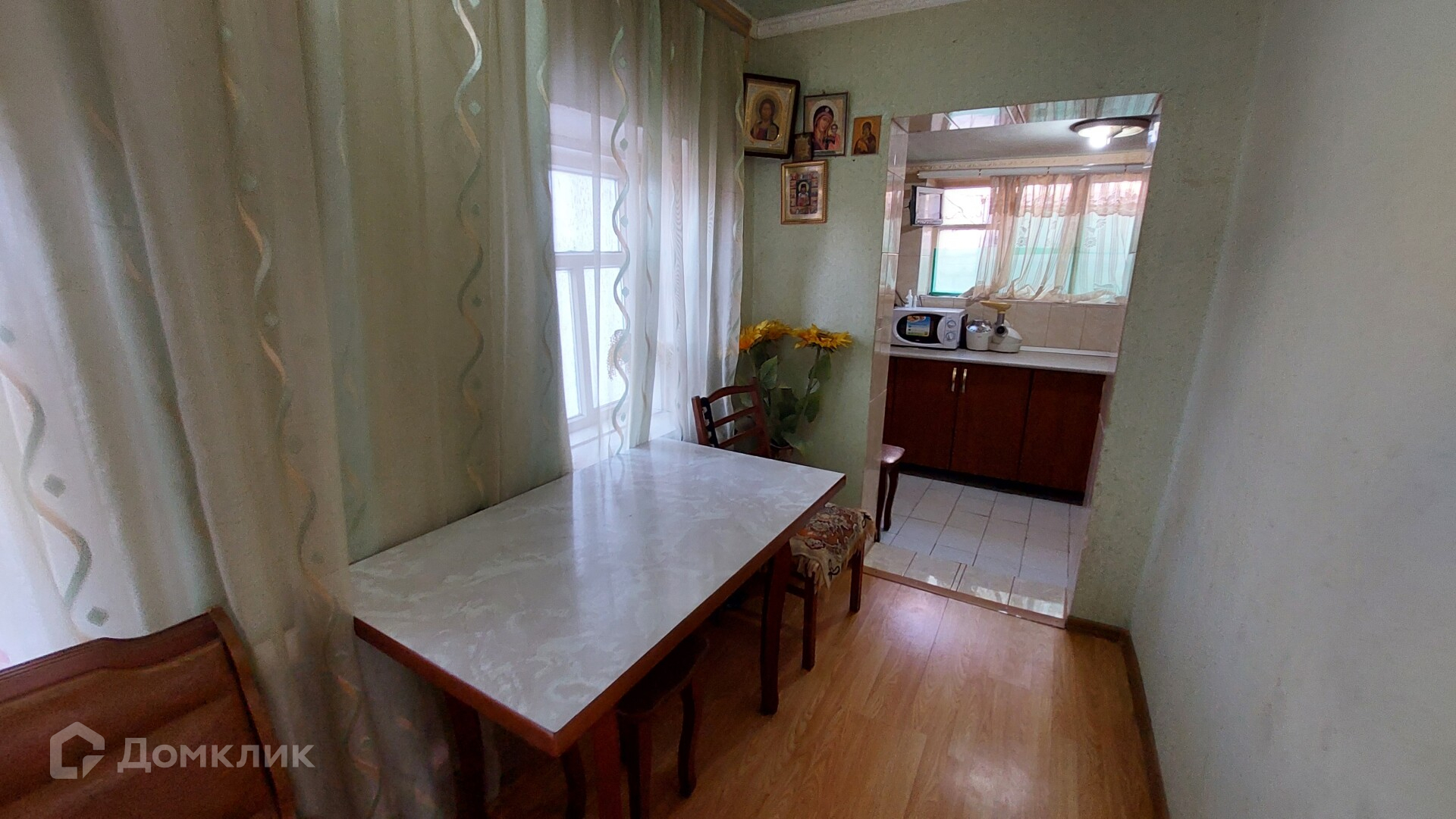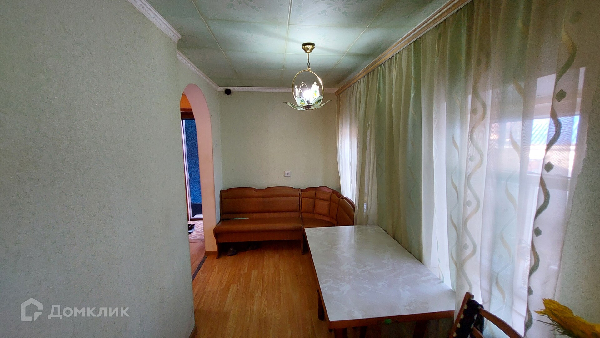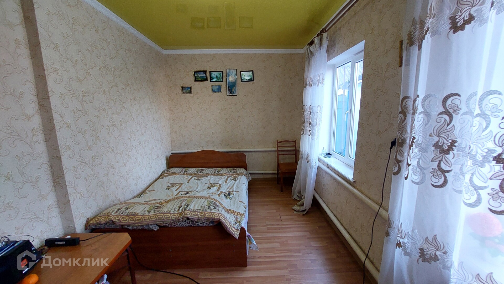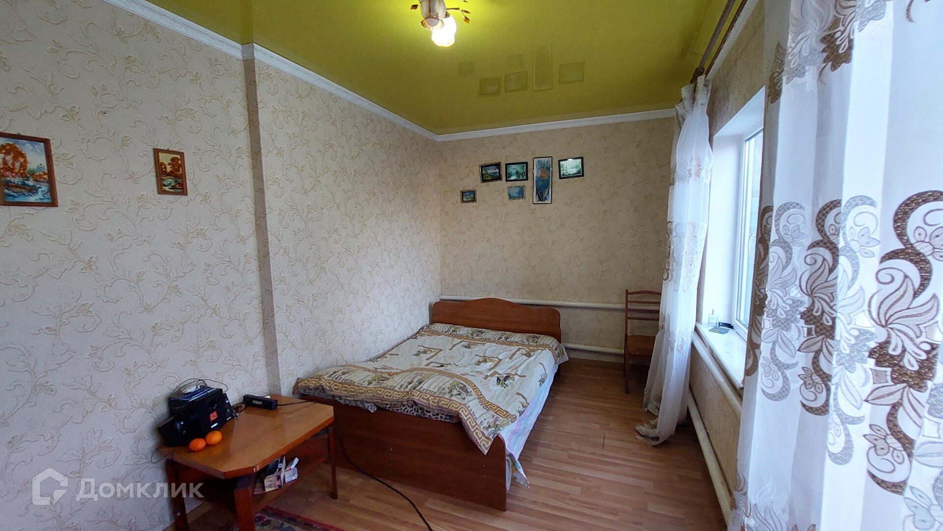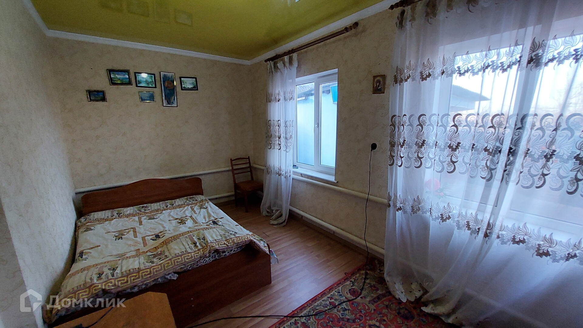 Первый дом. Его площадь - 46,6 кв. м. Здесь две изолированные комнаты, ещё одна смежная, коридор, котельная. В котельной стоит мощный газовый котёл, отапливающий оба дома. Окна в доме пластиковые, потолки натяжные, постелен ламинат.