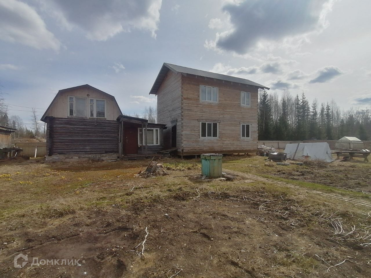 - Также на участке двухэтажная баня из бревна (где на первом этаже комната отдыха, моечная, парилка, на втором этаже спальная комната)