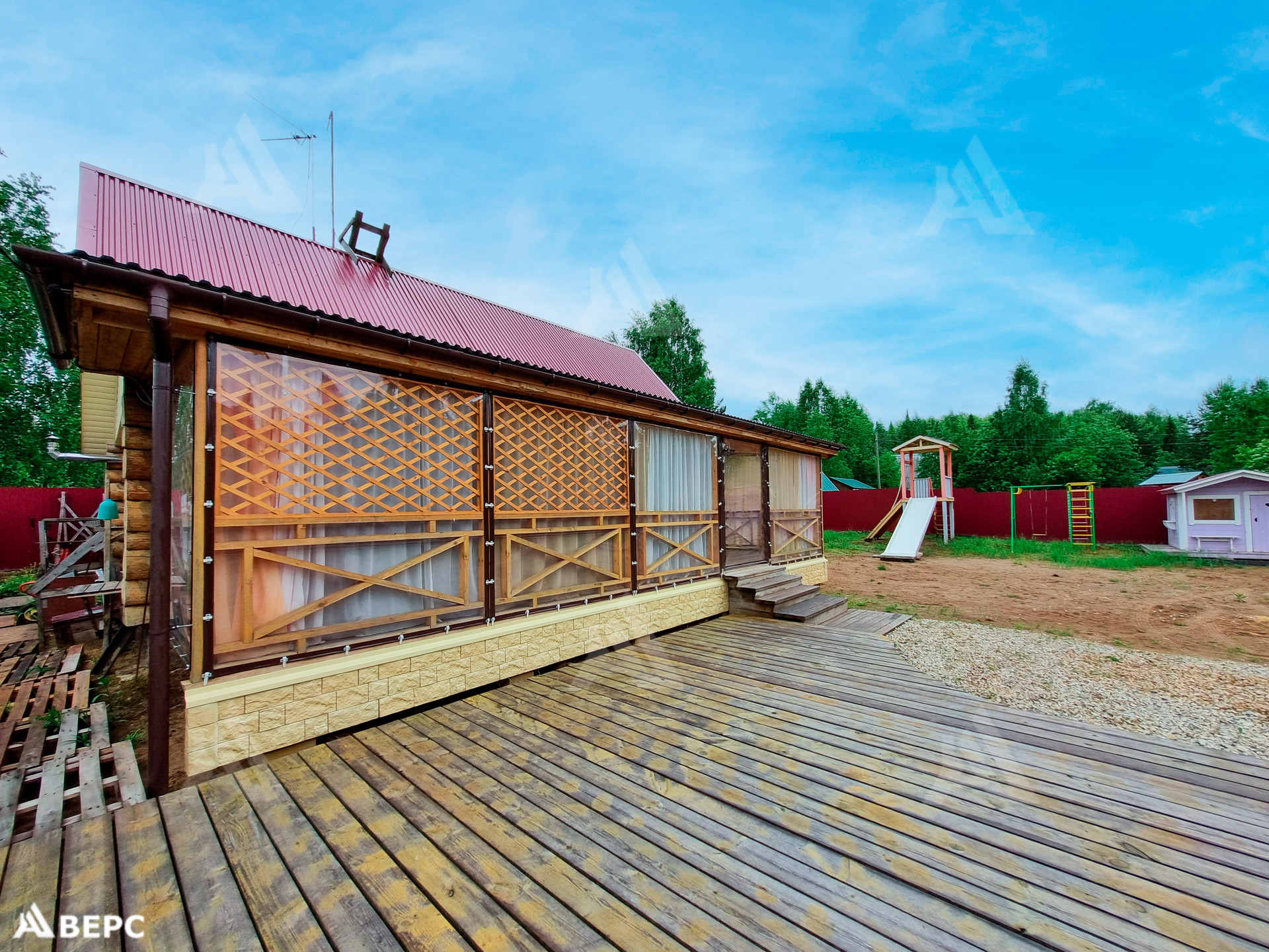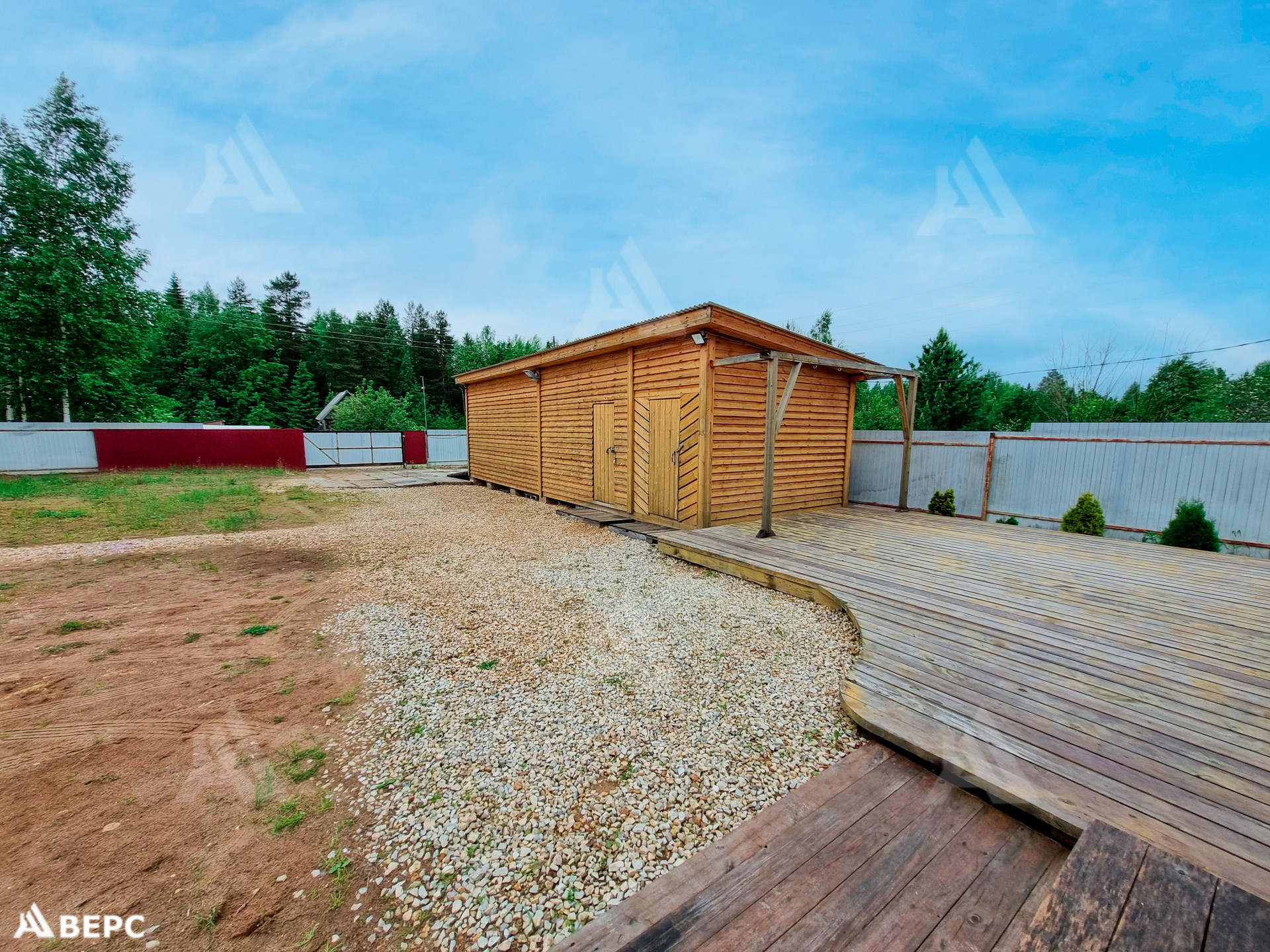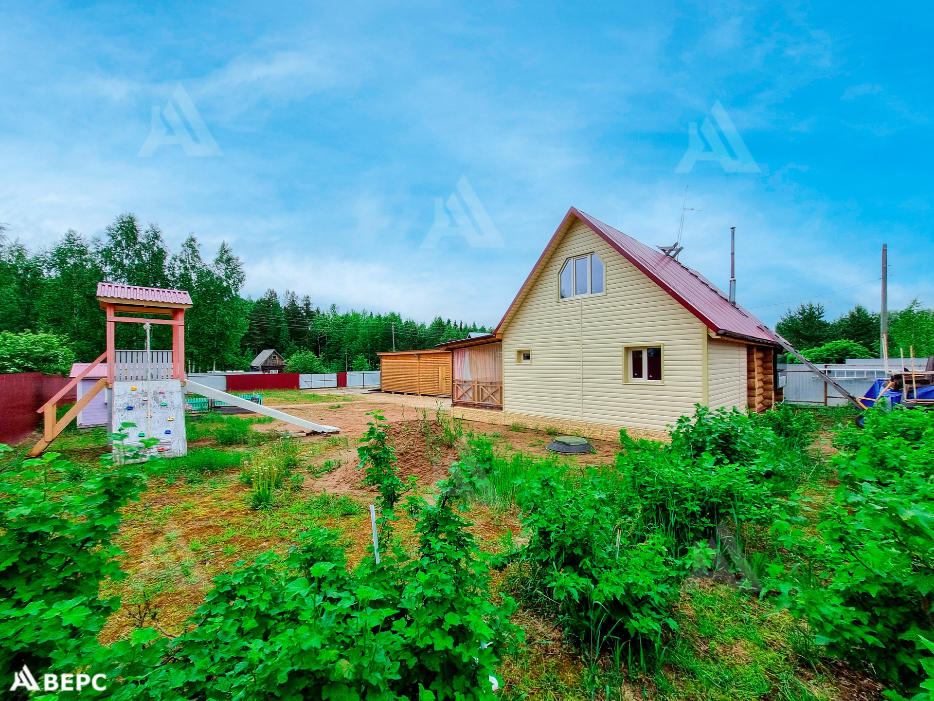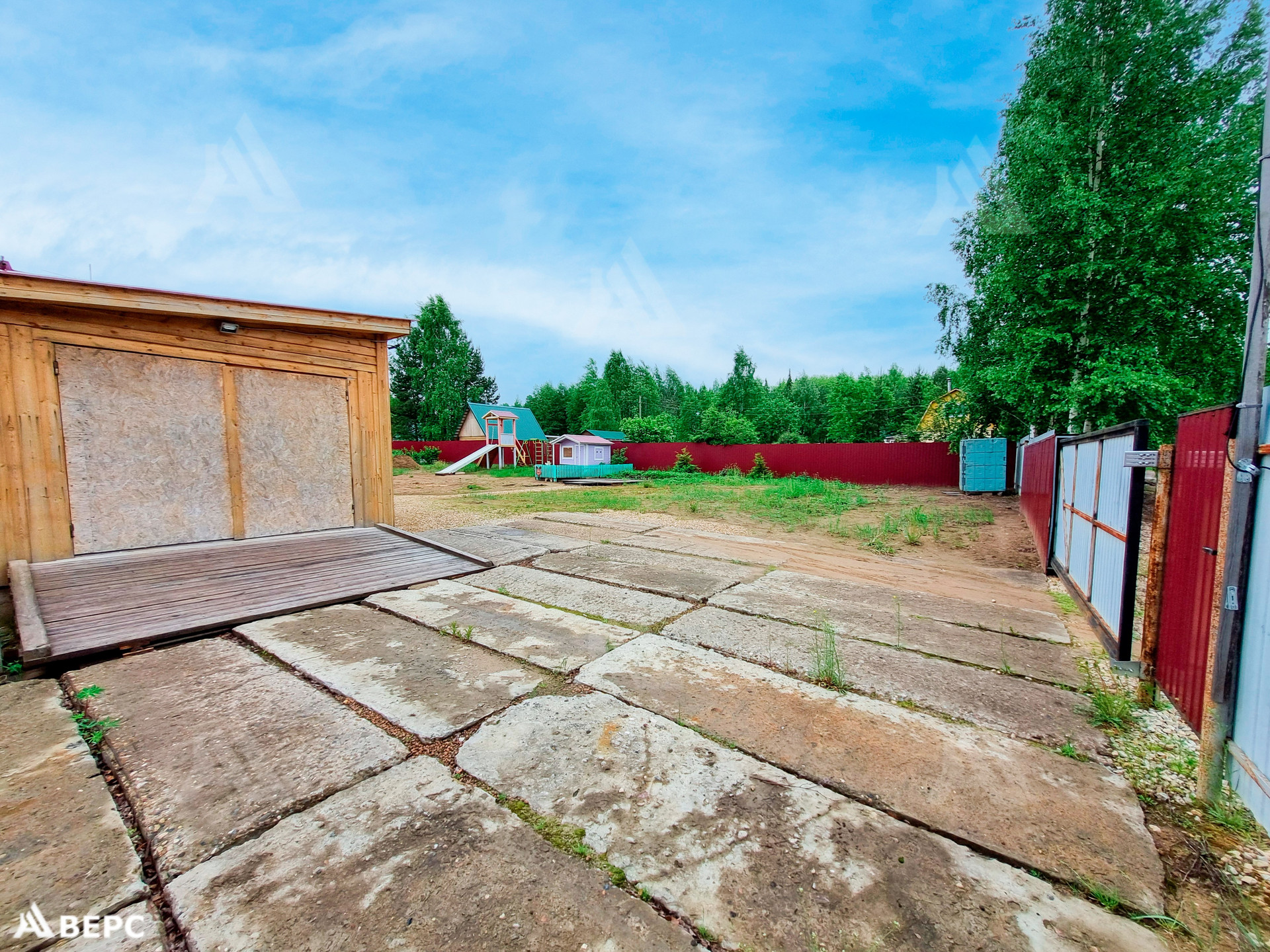 Участок приобретен в 2017 году, на котором был лес и пни. Проведены работы по расчистке, выкорчеванию. Для выравнивания земли было завезено около 200 куб.м песка. Посажены: клубника, туи, голубые ели, сирень. Из кустарников: крыжовник, чёрная смородина. Первоначально был выкопан колодец (уже не используется), глубиной 4 кольца. Пробурена скважина глубиной 20 метров. В воде имеется взвесь песка и железа. На территории находится большая хозпостройка, 4х12. (Гараж, дровяник). Детская зона: спорт уголок, горка, домик, песочница. Между хозпостройкой есть деревянный подиум, где можно повесить качели, гамак. Зона для загара и отдыха.
