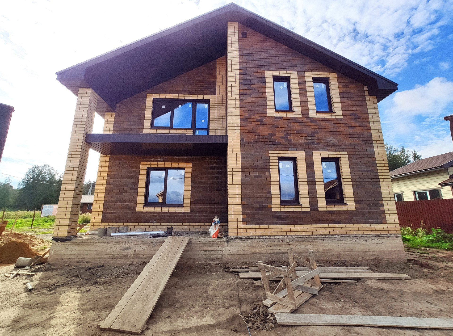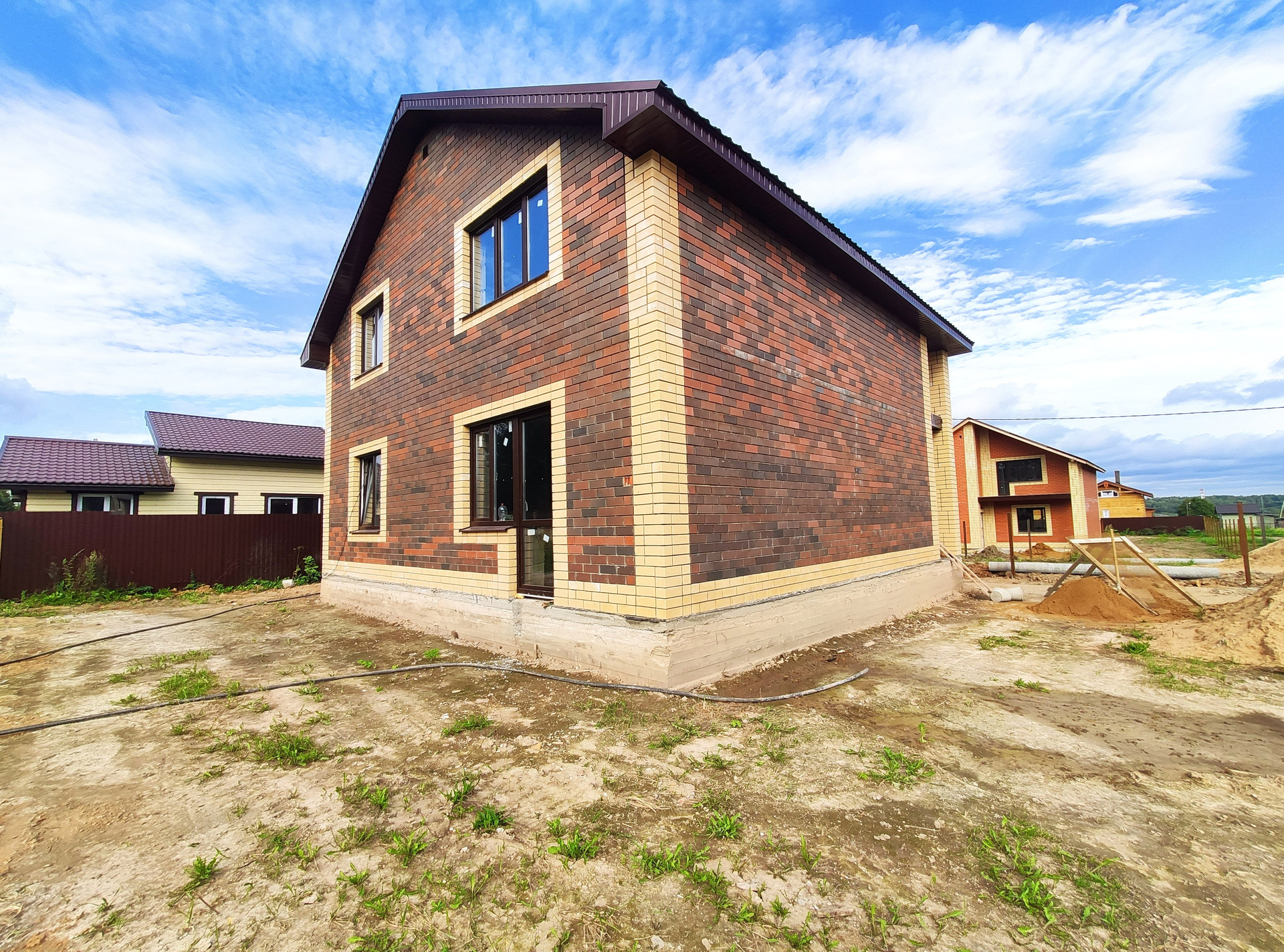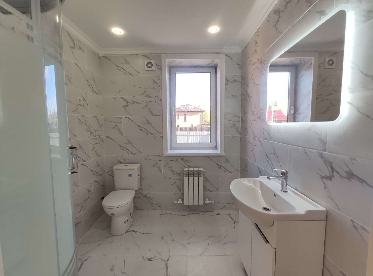 Городской округ Клин, д. Марино, коттедж 180 кв.м. на участке 10 соток, ДНП. Новый жилой 2-х этажный дом из газоблока, утеплен, фасад выполнен из облицовочного кирпича, свайно-ленточный фундамент сверху дополнительно полностью залит бетонной плитой в качестве подготовки для теплого пола, перекрытия железобетонные, лестница монолитная, окна пвх, крыша металлочерепица утеплена в 4 слоя - 20см. Цена включает в себя полную готовность участка и дома к заселению: будет установлен забор по всему периметру участка с откатными воротами, бетонная площадка для машины, внутри дома действующая бойлерная, разведенные коммуникации и отопление. В настоящее время есть возможность учесть пожелания покупателей по внутреннему обустройству дома и ремонту. На 1-этаже просторная кухня-гостиная с выходом на террасу, спальня, бойлерная, санузел, холл. На 2-этаже 3 спальни, санузел, балкон. Коммуникации: электричество 15 кВт, вода из скважины, канализация переливной септик, газ по границе. Участок, ровный, сухой, правильной формы. Круглогодичный подъезд. Экологически чистое место, деревня расположена в окружении леса. В пешей доступности автобусная остановка, магазин продуктов, Истринское водохранилище - 5 мин. езды на авто. Подходит под ипотеку по льготной ставке.