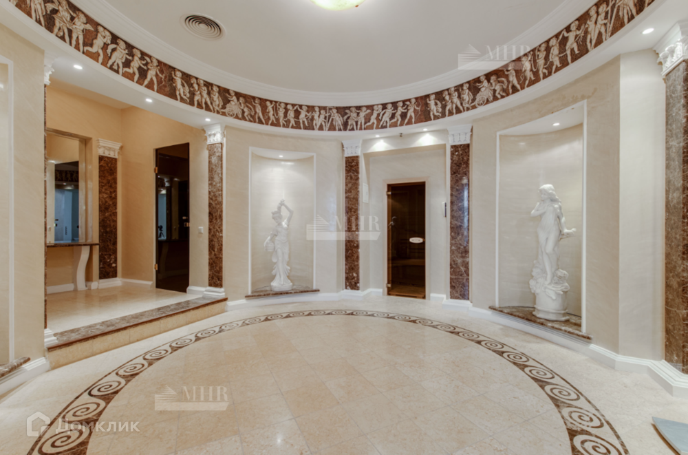 Цоколь: холл с лифтом, бильярдный зал, бар, бассейн, сауна, душевая, с/у, кинозал, спортивный зал, с/у, душевая, винный погреб, 2-х комнатная квартира для персонала, технические помещения.