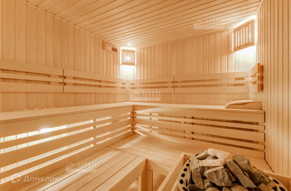 Банный дом: комната отдыха, кухня, сауна, 2 душевые, 2 с/у, раздевалка, терраса с видом на пруд.