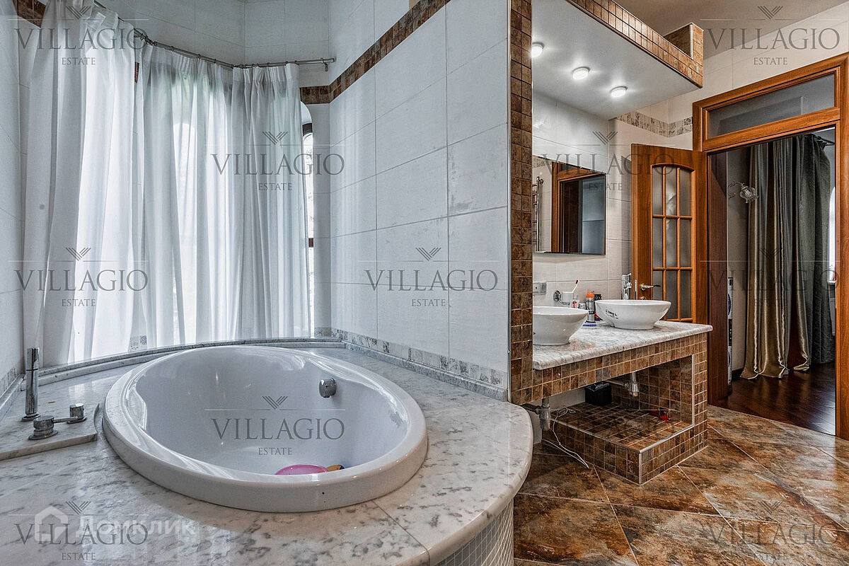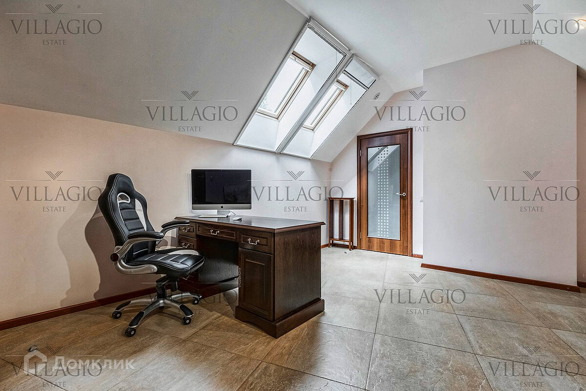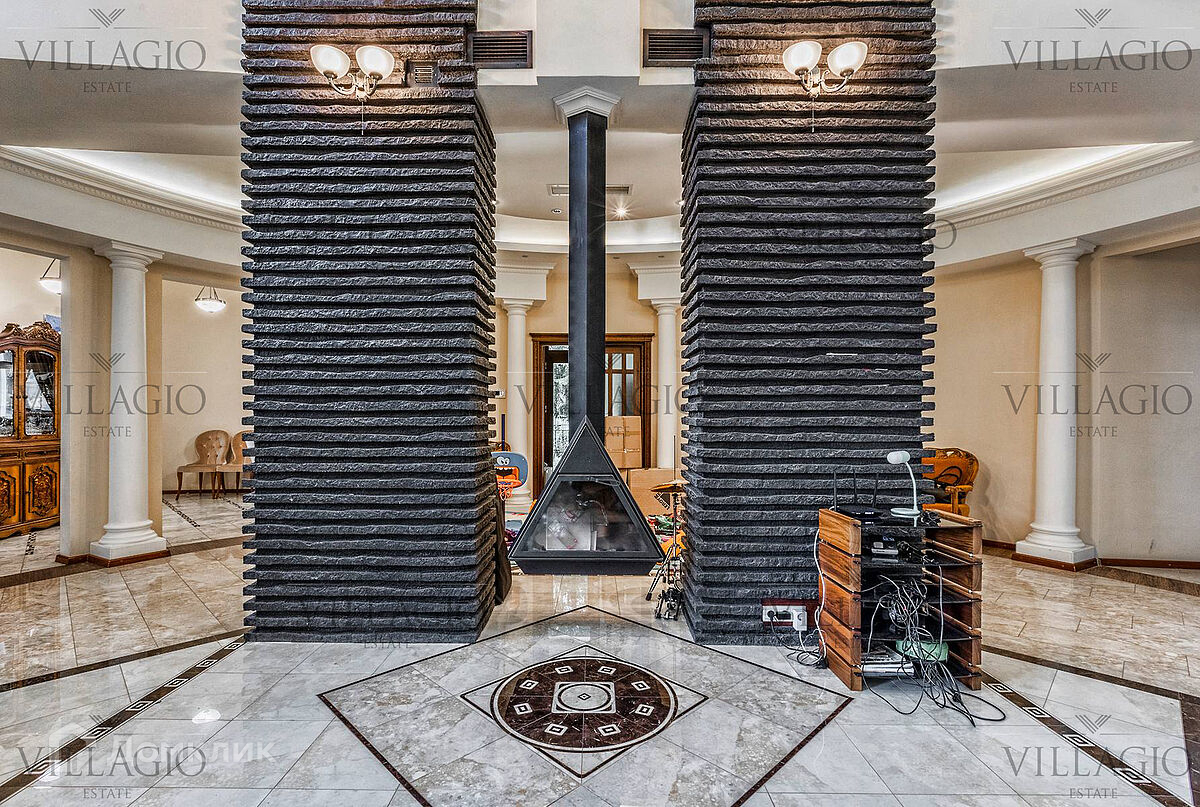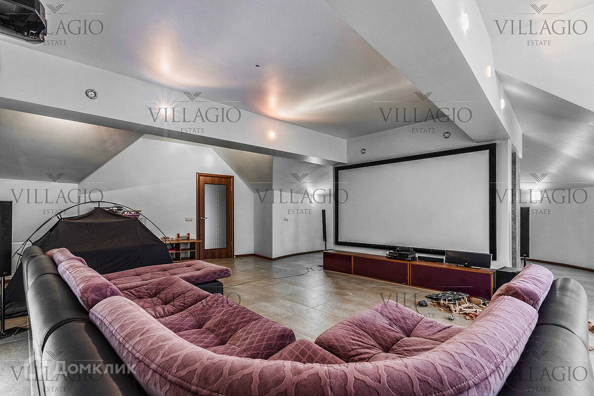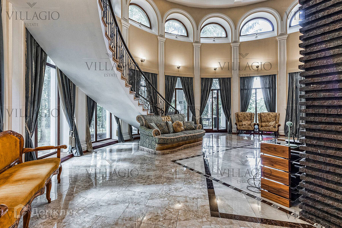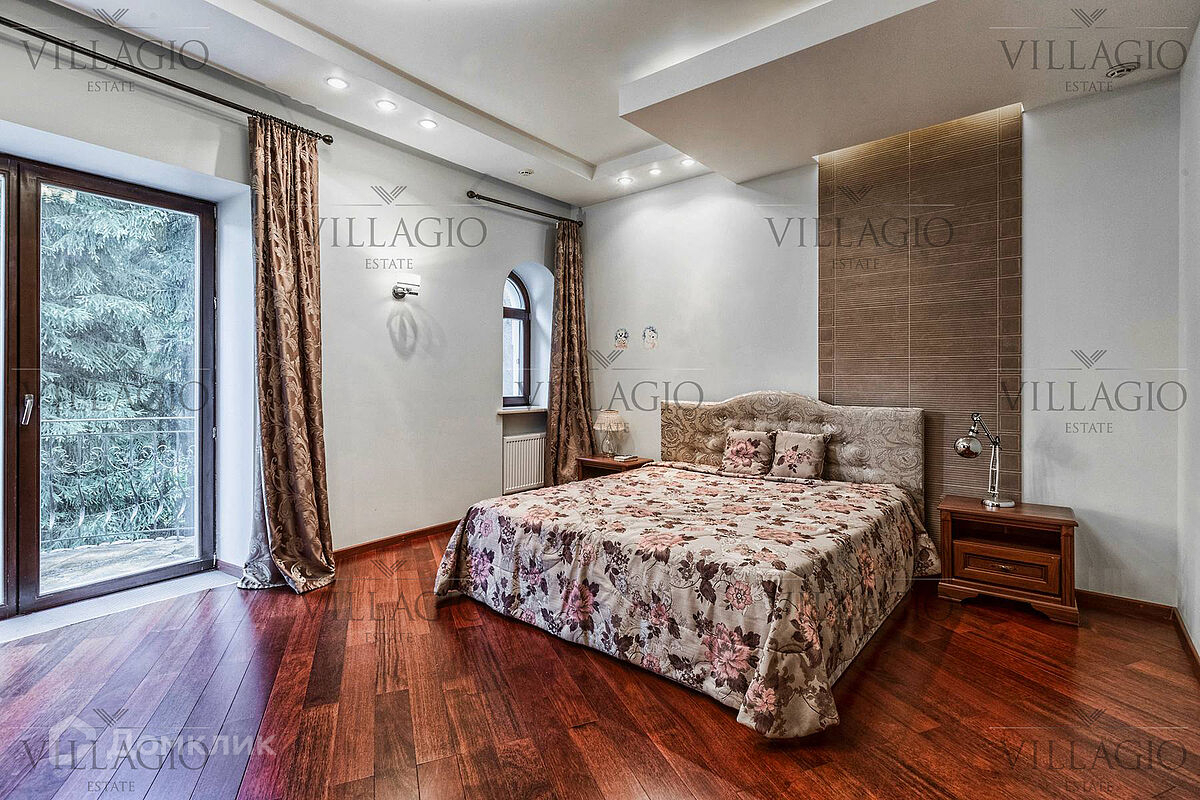 1 этаж: гардеробная, гостиная с камином, вторым светом и выходом на террасу, столовая, кухня, гостевая спальня, с/у, библиотека, бойлерная. 2 этаж: холл, хозяйская спальня с с/у и гардеробной, гостевая спальня с балконом, детская спальня с игровой комнатой, с/у.  Мансарда: 2 спальни, с/у, зона отдыха (кинотеатр).  На участке расположен 2-х этажный гостевой дом, в котором располагается гараж на 1 авто с квартирой для персонала площадью 200 м². Инженерия: все центральные коммуникации, ТВ, высокоскоростной интернет, приточно-вытяжная система вентиляции, кондиционирование, система фильтрации воды.