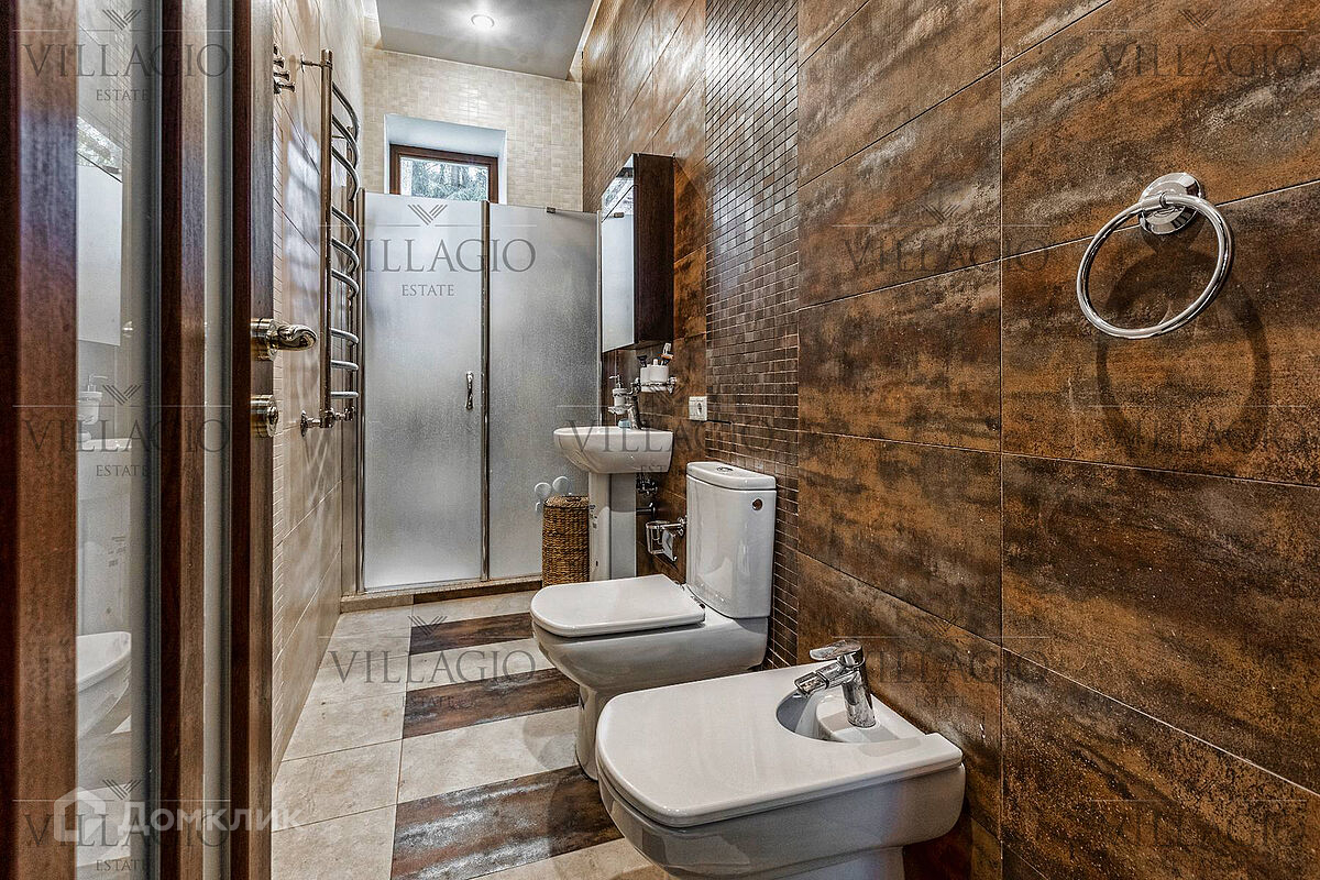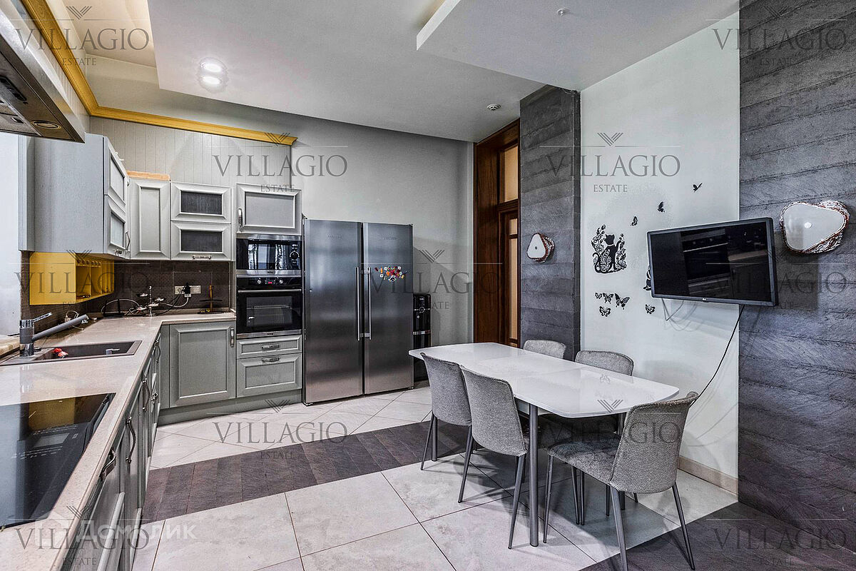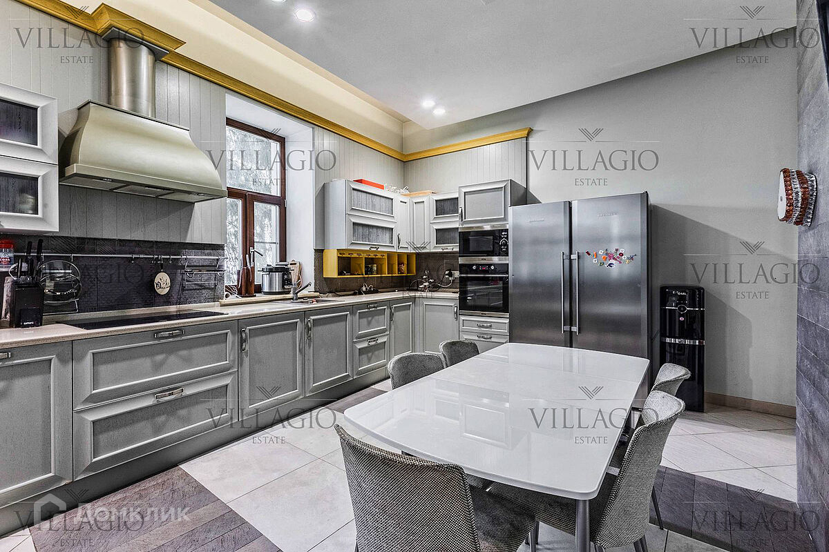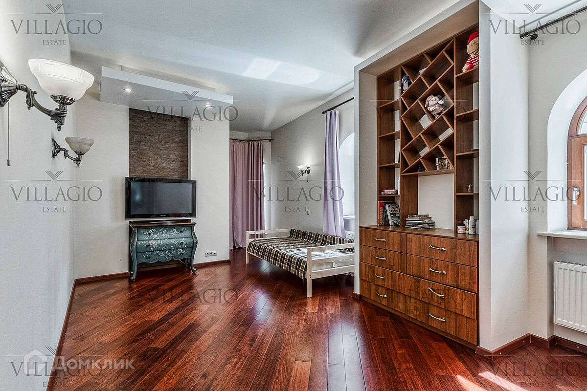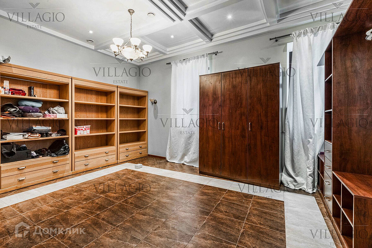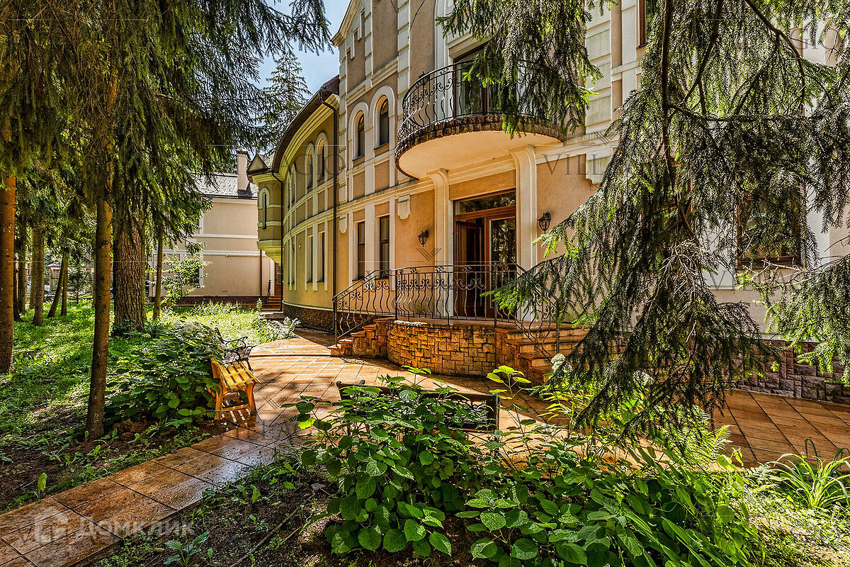 1 этаж: гардеробная, гостиная с камином, вторым светом и выходом на террасу, столовая, кухня, гостевая спальня, с/у, библиотека, бойлерная. 2 этаж: холл, хозяйская спальня с с/у и гардеробной, гостевая спальня с балконом, детская спальня с игровой комнатой, с/у.  Мансарда: 2 спальни, с/у, зона отдыха (кинотеатр).  На участке расположен 2-х этажный гостевой дом, в котором располагается гараж на 1 авто с квартирой для персонала площадью 200 м². Инженерия: все центральные коммуникации, ТВ, высокоскоростной интернет, приточно-вытяжная система вентиляции, кондиционирование, система фильтрации воды.
