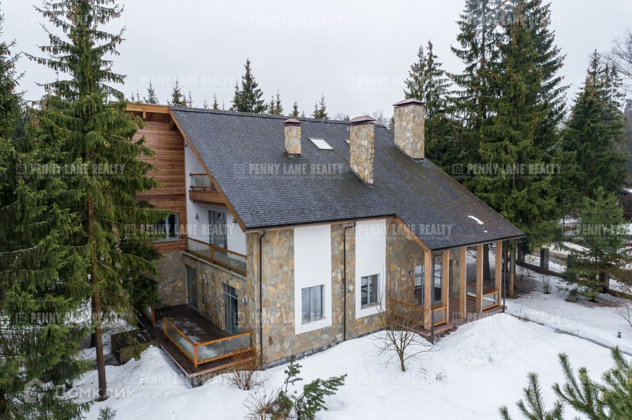 Лот №12525. Дом под ключ 576 кв.м. на участке 30.47 соток. Количество спален: 4. Коттеджный посёлок «Шервуд», Новорижское шоссе, 23 км от МКАД. На лесном участке площадью 30 соток, в тени благородных деревьев, проложены прогулочные дорожки. На участке спроектирована качественная дренажная система. Отдельно на участке построен двухэтажный гостевой дом. Дом в стиле Шале окружен вековыми соснами. Панорамные окна, две террасы, балконы на этажах и мансардные окна расширяют пространство за пределы дома, впуская в дом больше света и красоты природы. В основе коттеджа лежит одна из самых прочных и долговечных конструкций — кирпично-монолитная. В доме установлен панорамный лифт, качественные сплит-системы, функционируют теплые водяные полы. Гостиная с камином с двух сторон окружена панорамными окнами с видом на заснеженные вековые сосны.