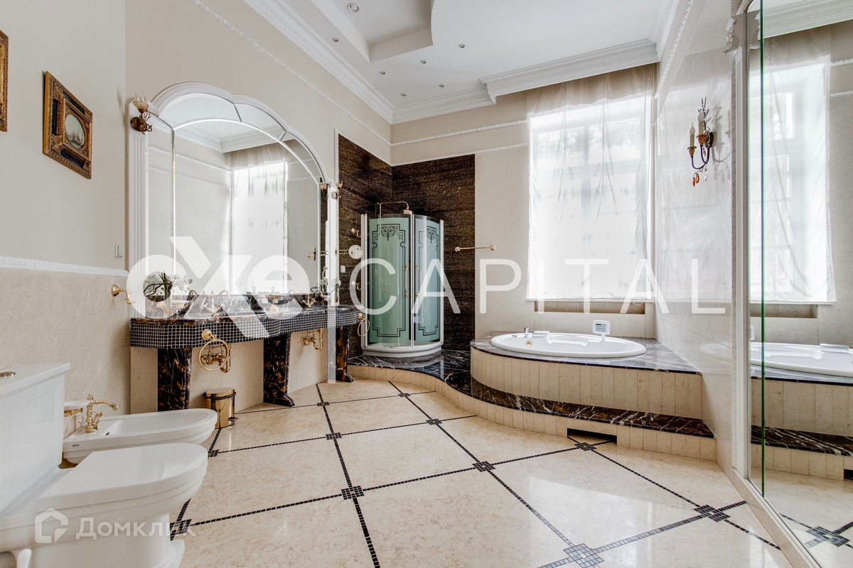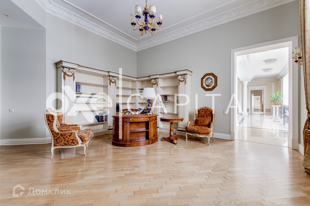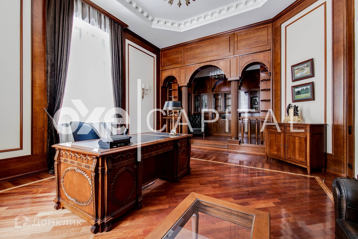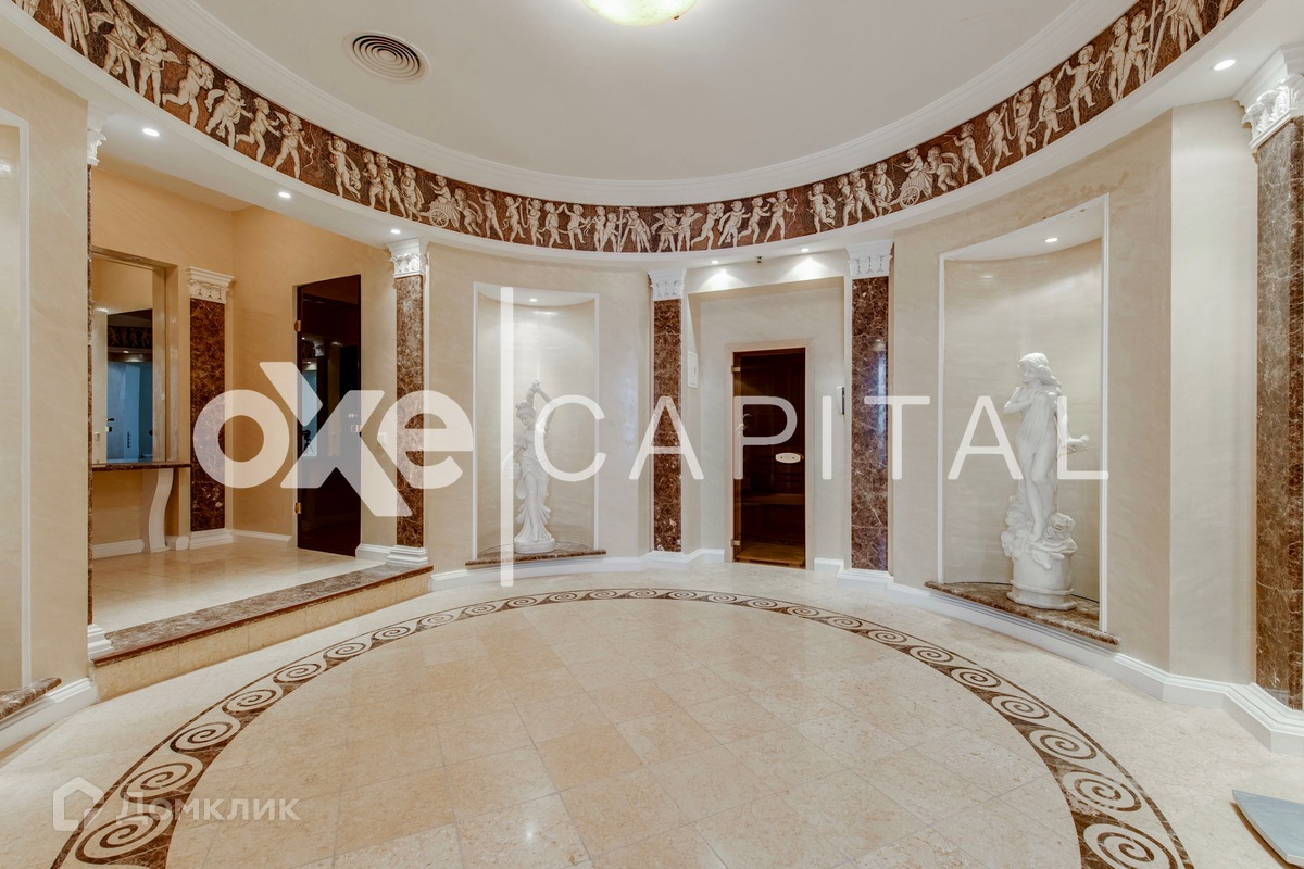 Кроме того, данная резиденция граничит с лесным массивом, что добавляет дополнительную привлекательность и отдельную атмосферу уединения. При желании, дополнительно можно взять в аренду 200 соток лесного участка, чтобы полностью насладиться окружающей природой. Цоколь: холл с лифтом, бильярдный зал, бар, бассейн, сауна, душевая, санузел, кинозал, спортивный зал, санузел, душевая, винный погреб, 2-х комнатная квартира для персонала, технические помещения. 1 этаж: прихожая, лифт, гостевой санузел, большой холл с парадной лестницей и вторым светом. Правое крыло: столовая с каминной зоной и выходом на террасу, кухня, комната отдыха. Левое крыло: спальня с выходом на террасу, с ванной комнатой и гардеробной, кабинет, приемная. В правом и левом крыле дома имеется свои автономные входы/выходы. 2 этаж: холл у лифта. Правое крыло: мини библиотека, комната выдержанная в русском стиле, комната выдержанная в греческом стиле, спальня с ванной комнатой и гардеробной. Левое крыло: будуар, комната с выходом на балкон, спальня с ванной комнатой, спальня с ванной комнатой и гардеробной, отдельный блок для подростка (спальня, гостиная, ванная комната, гардеробная). Гараж: отдельностоящий 4 м/м.