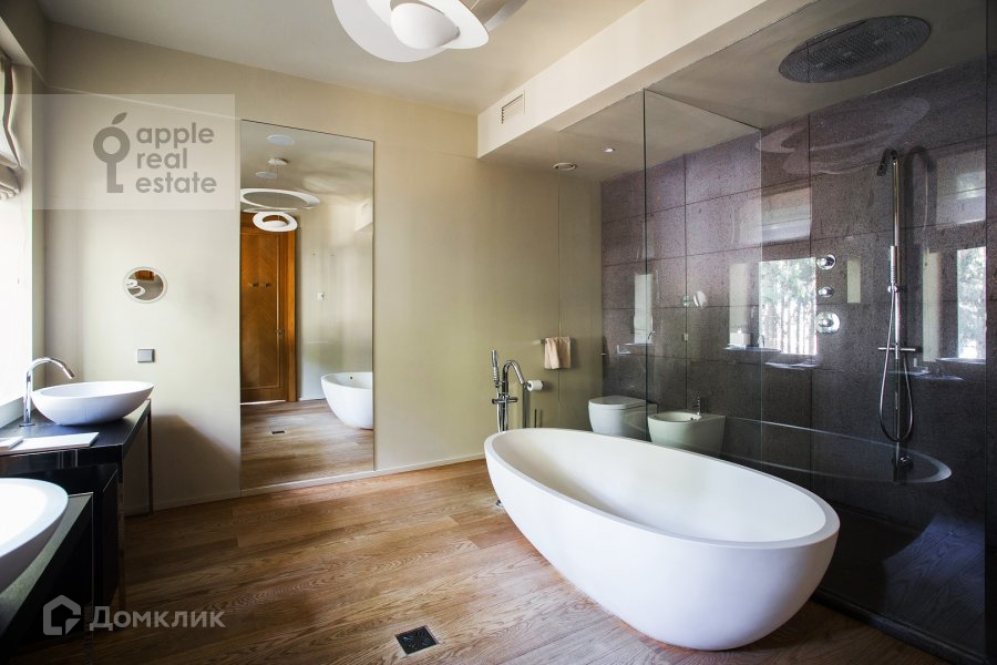 Охраняемый коттеджный поселок "Шервуд", находящийся внутри густого реликтового леса. Дом в современном стиле с использованием премиальных материалов изготовленных на заказ. Мебель Gervasoni. Современная бытовая техника. Кухня Bulthaup. Сантехника Boffi. Дизайнерские светильники. На полу инженерная доска Mafi.