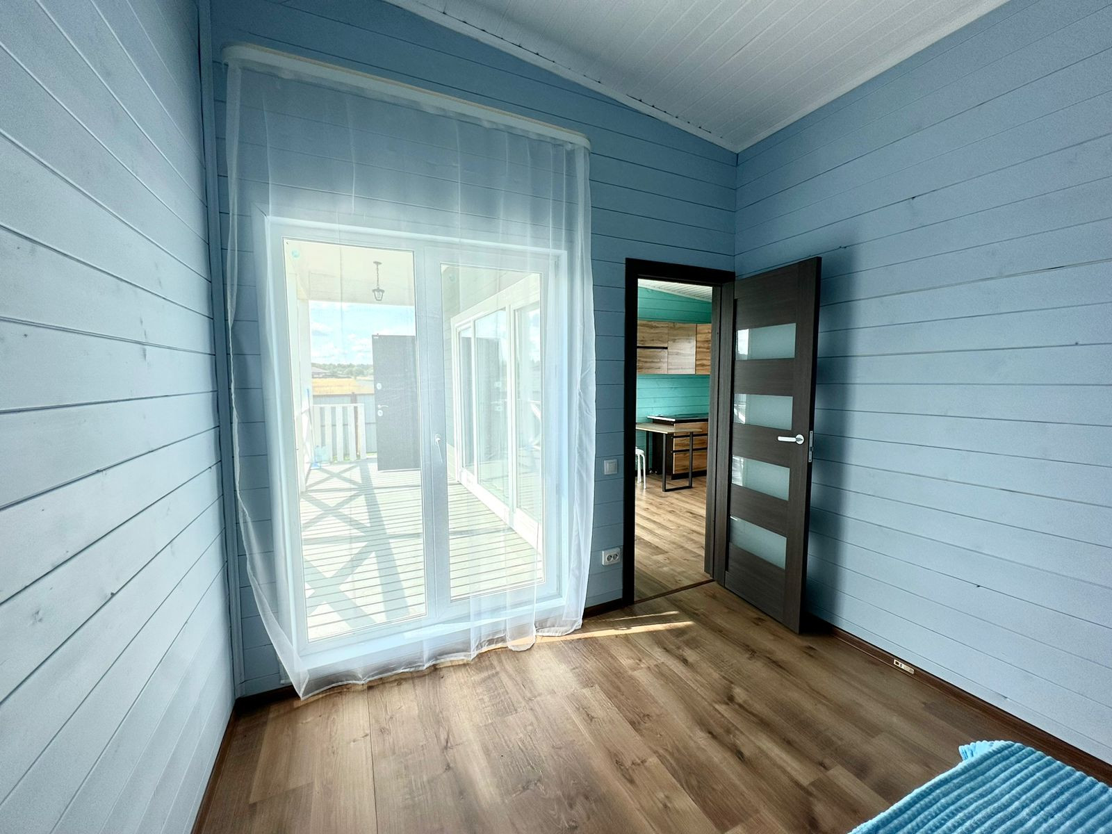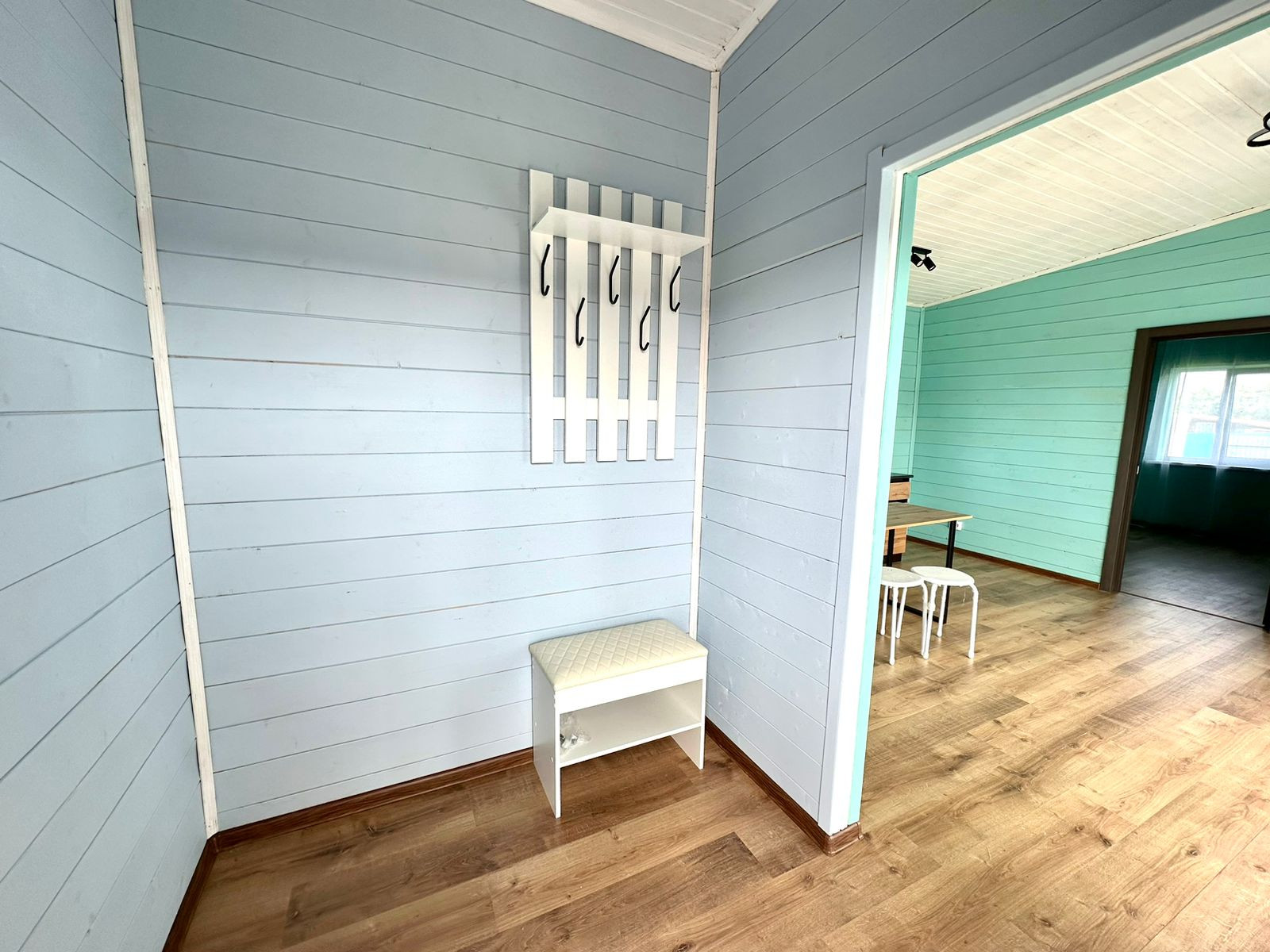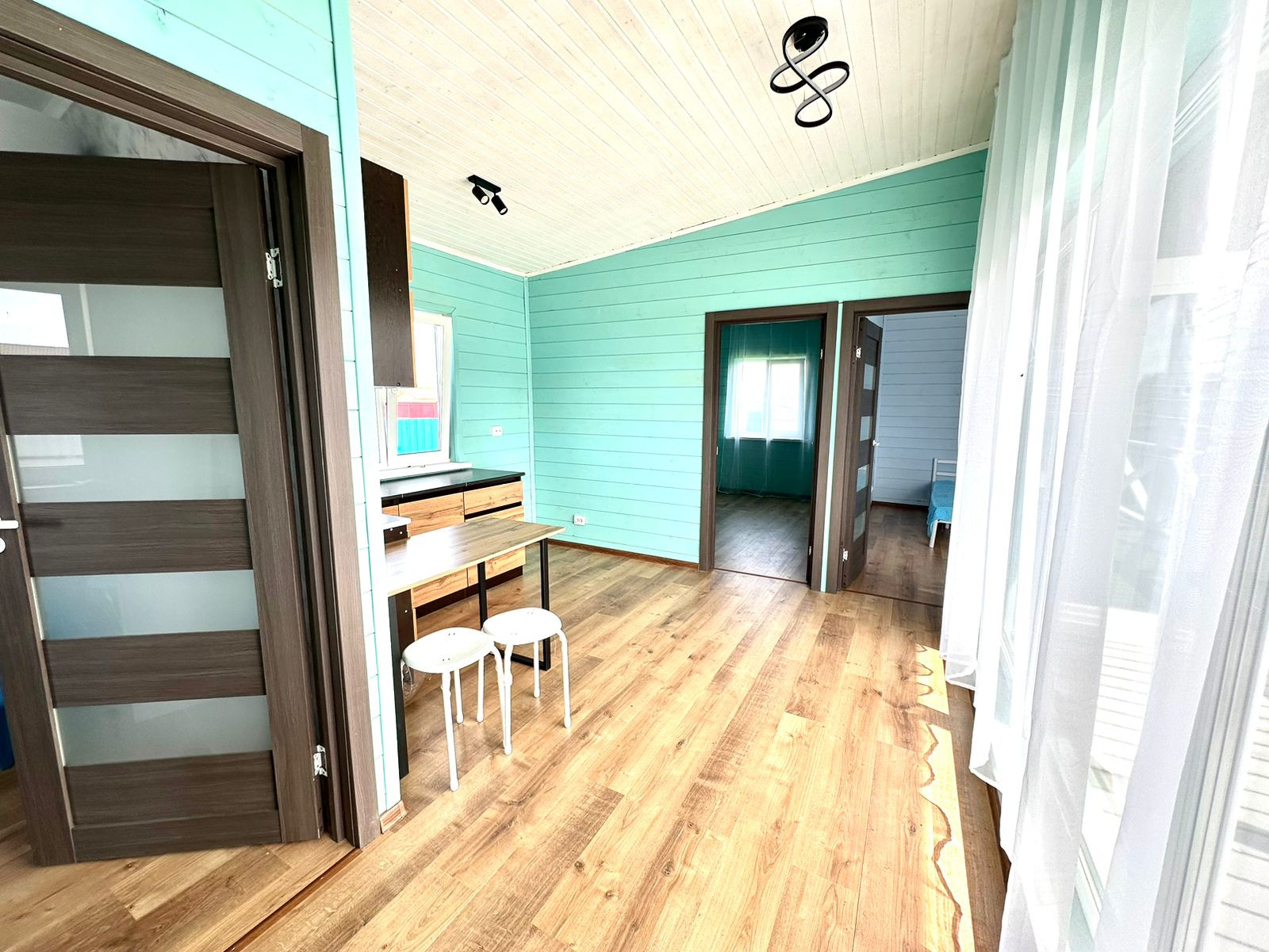 Дом очень теплый и подходит для круглогодичного проживания. Соседи живут на постоянной основе. На полу - ламинат.