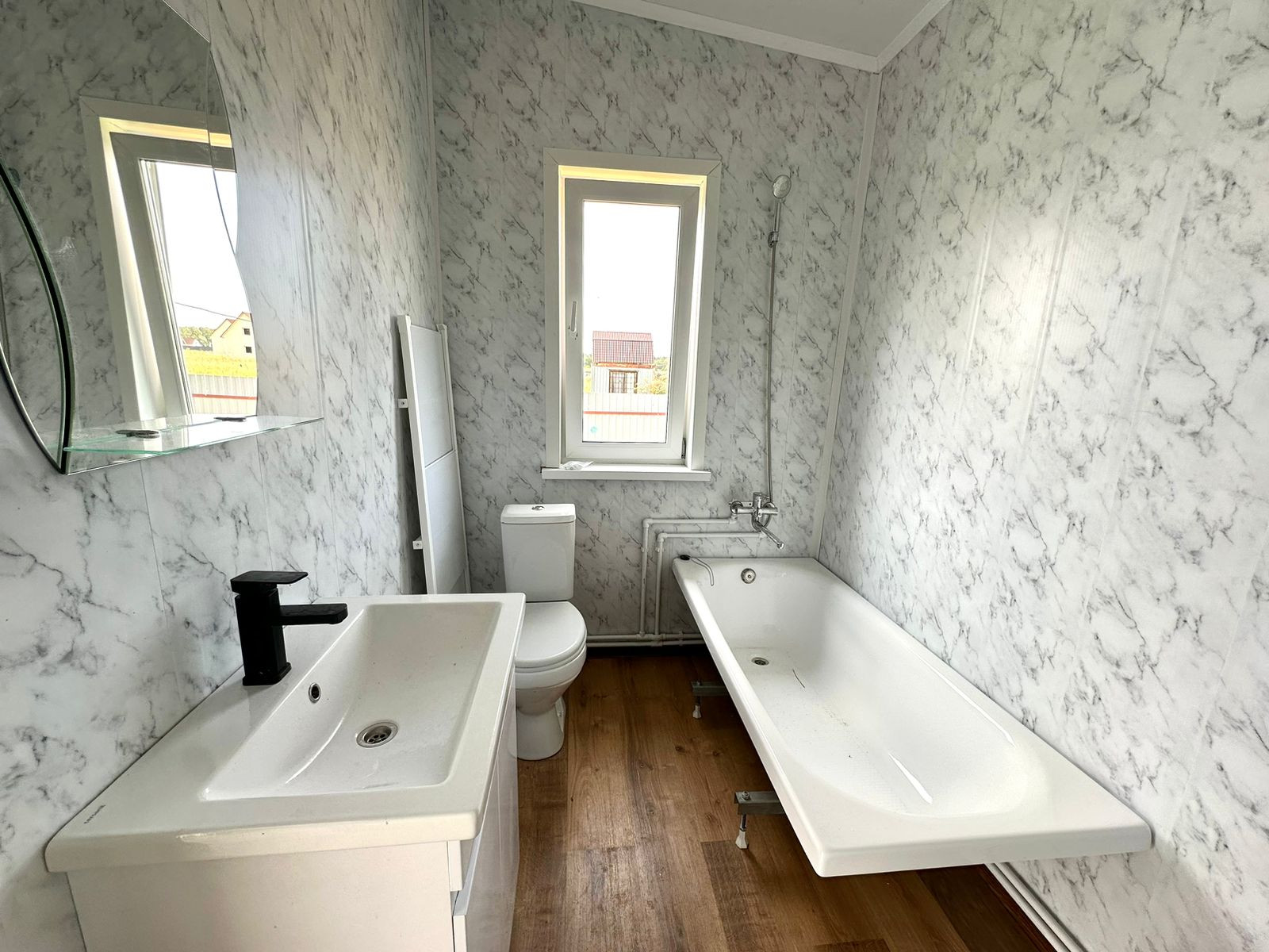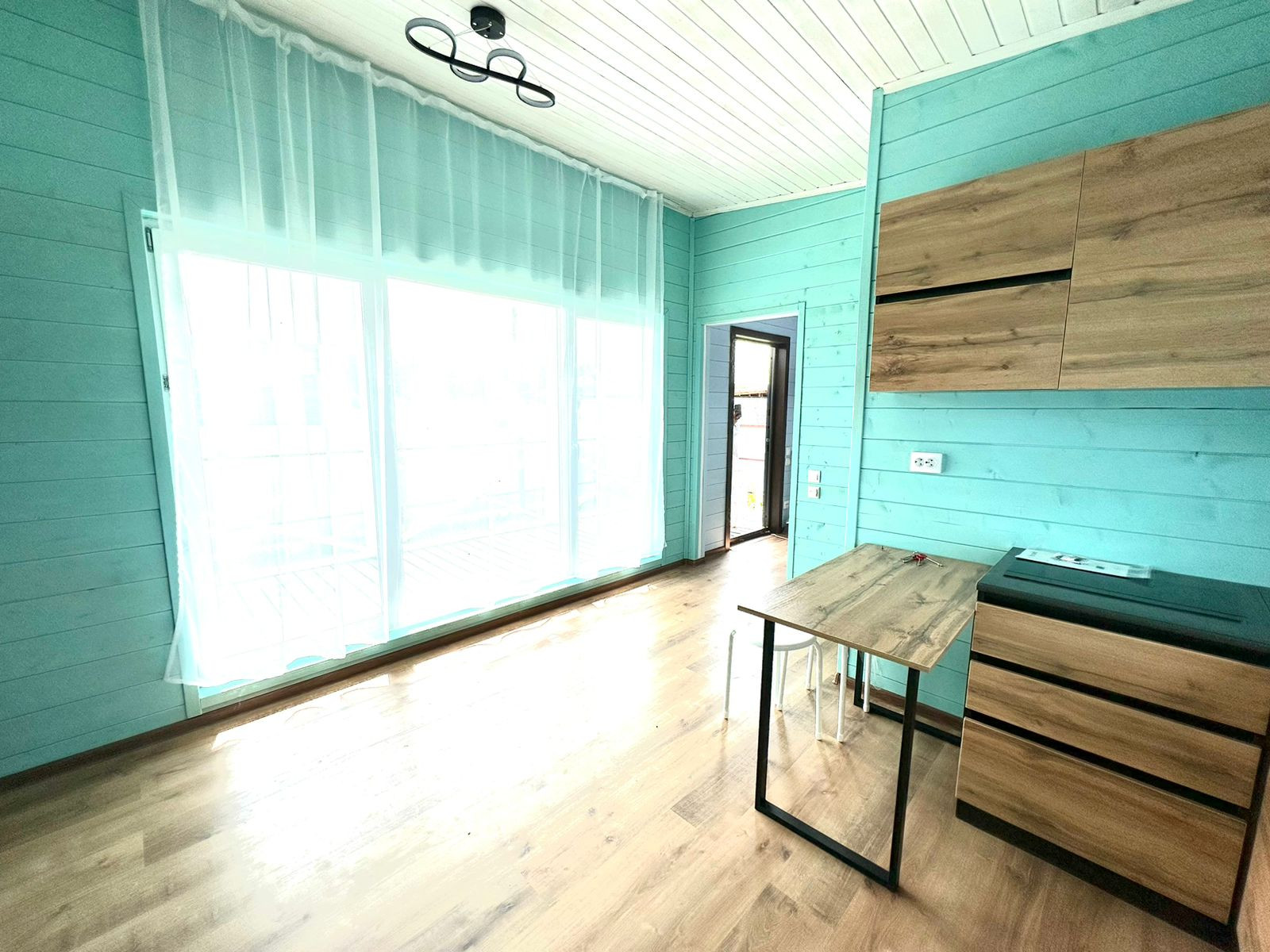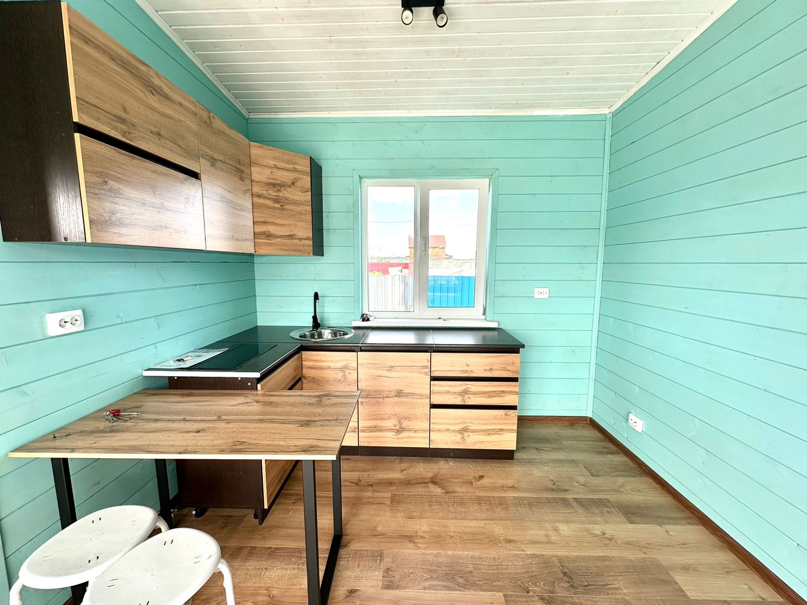 Дом очень теплый и подходит для круглогодичного проживания. Соседи живут на постоянной основе. На полу - ламинат.